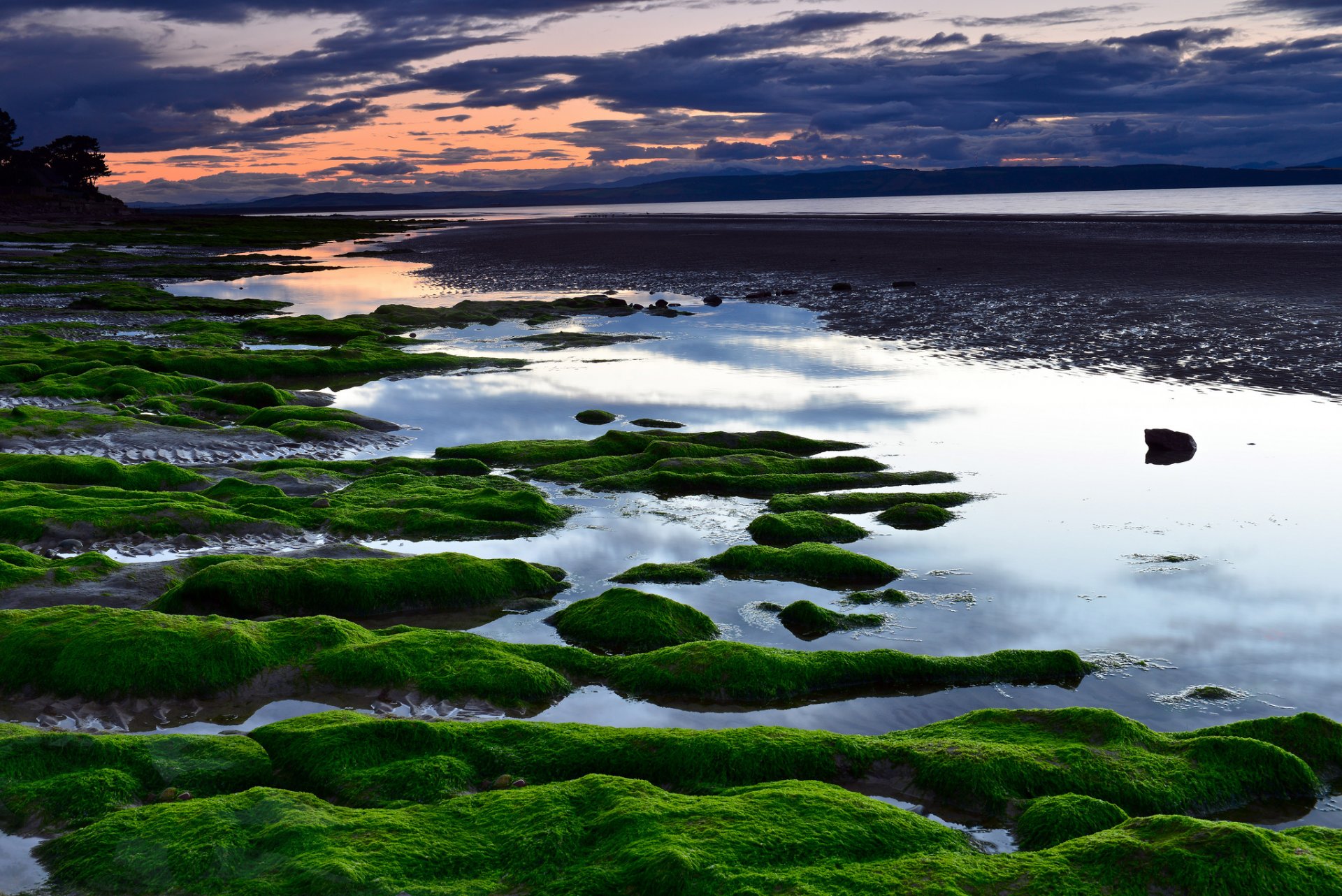 Paisaje con niños en la distancia y un hermoso cielo rosaPaisaje con niños en la distancia y un hermoso cielo rosa