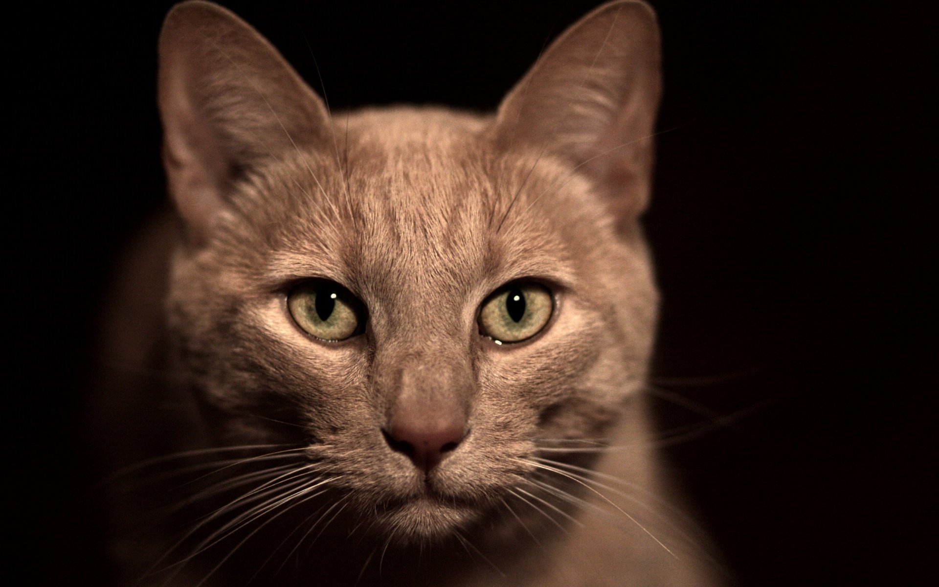 Hermoso gato peludo con ojos grandes en el fondo de la guirnalda del árbol de Navidad