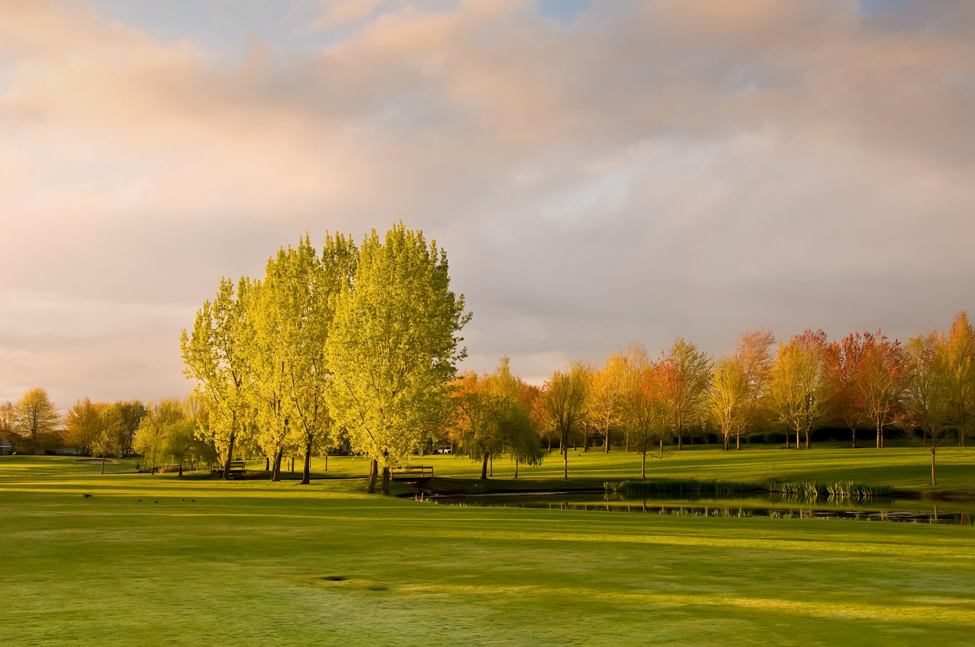Principios de otoño. hierba verde en el parque. gran estanque con puentePrincipios de otoño. Hierba verde en el parque. Gran estanque con puente