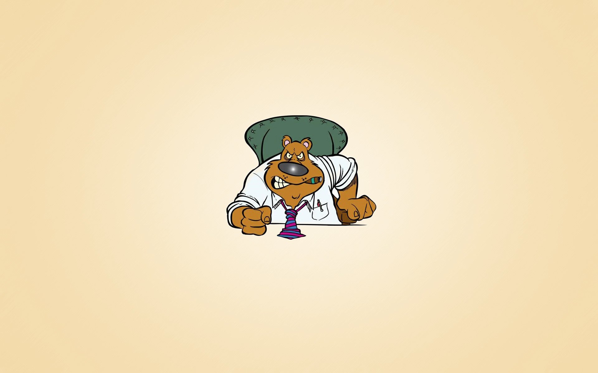 Jefe de oso enojado con cigarro golpeando el puño sentado en una silla