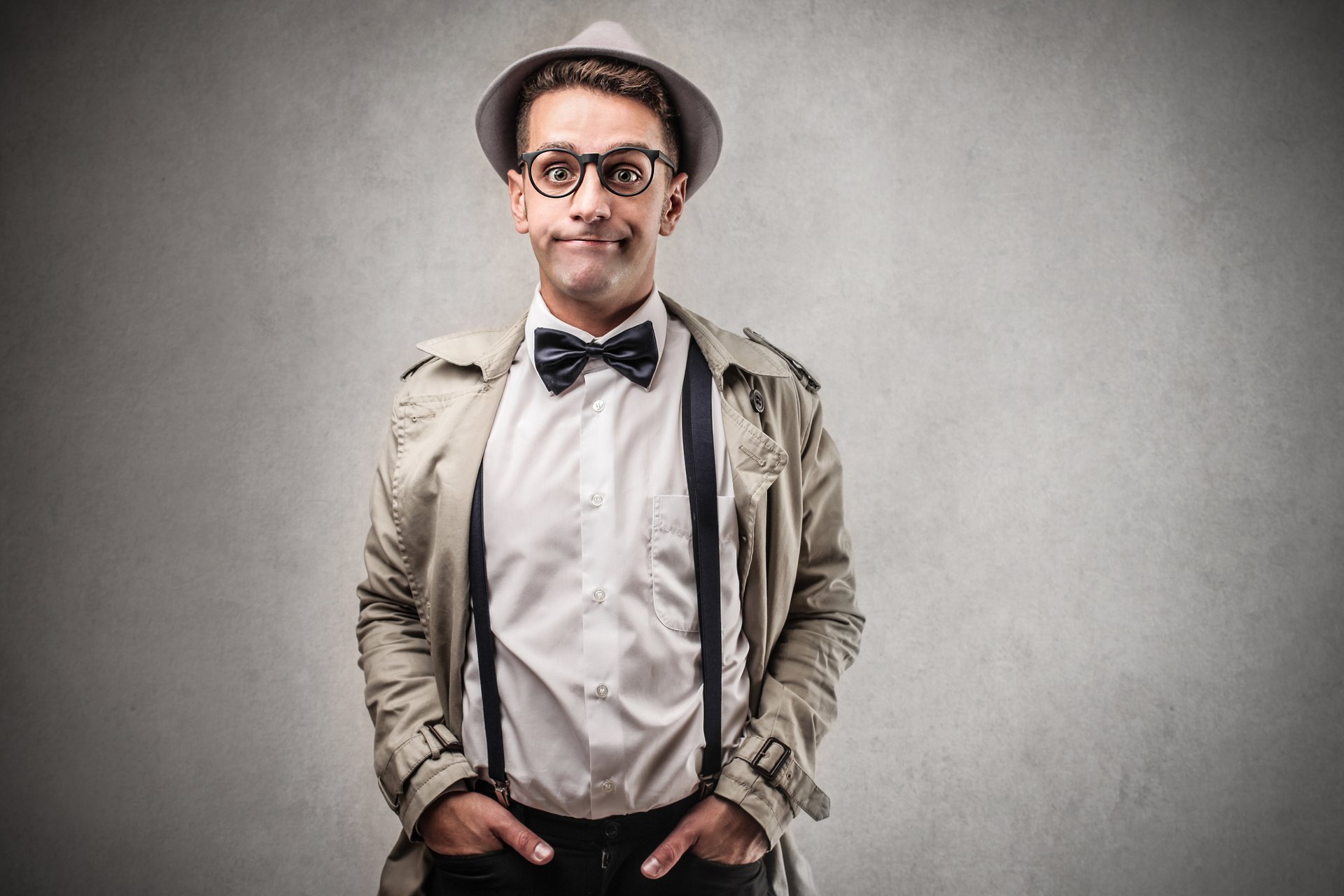 Hombre en traje en una mesa con un montón de tijerasHombre en traje en una mesa con un montón de tijeras