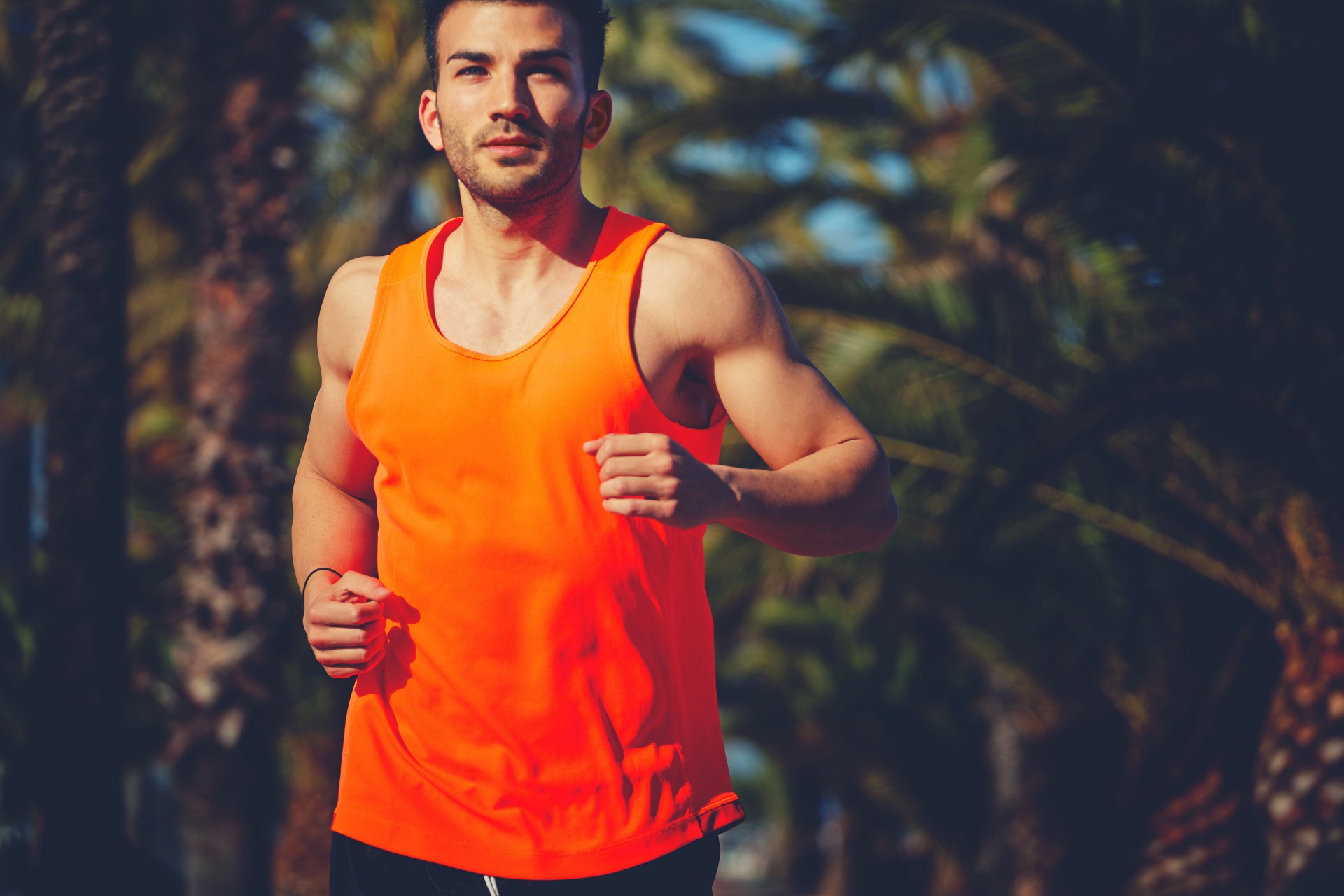 Un hombre guapo Mira a la lente de la cámara en el fondo de las estructuras de la ciudad