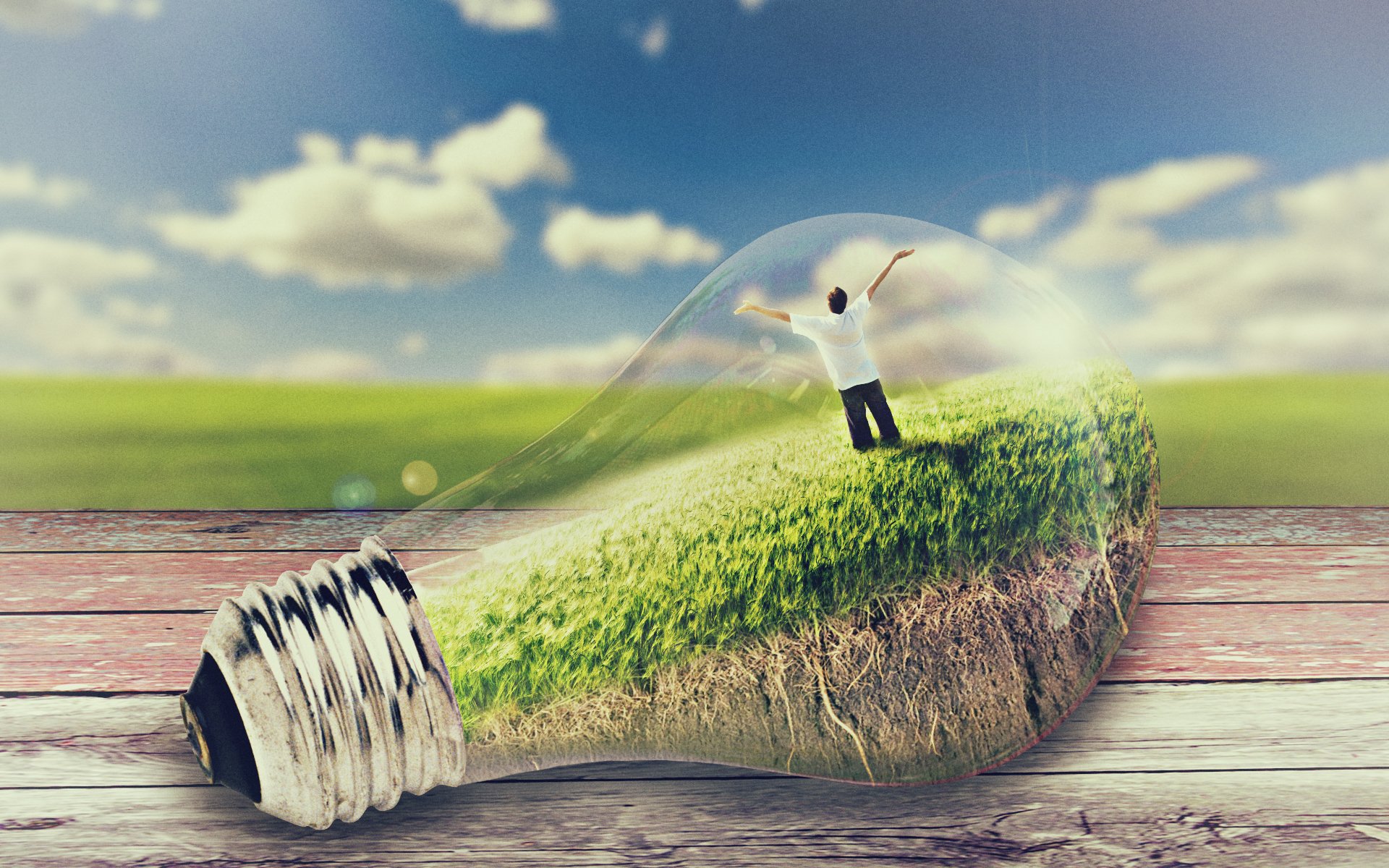 Abstracción en forma de un hombre pensativo sobre un fondo azul