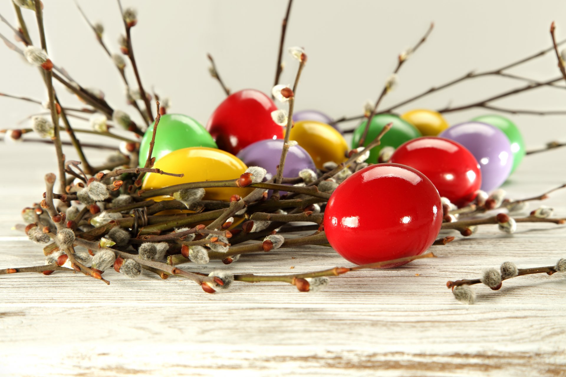 Huevos multicolores, zancudos y galletas sobre la mesa en semana santaHuevos multicolores, zancudos y galletas sobre la mesa en semana Santa