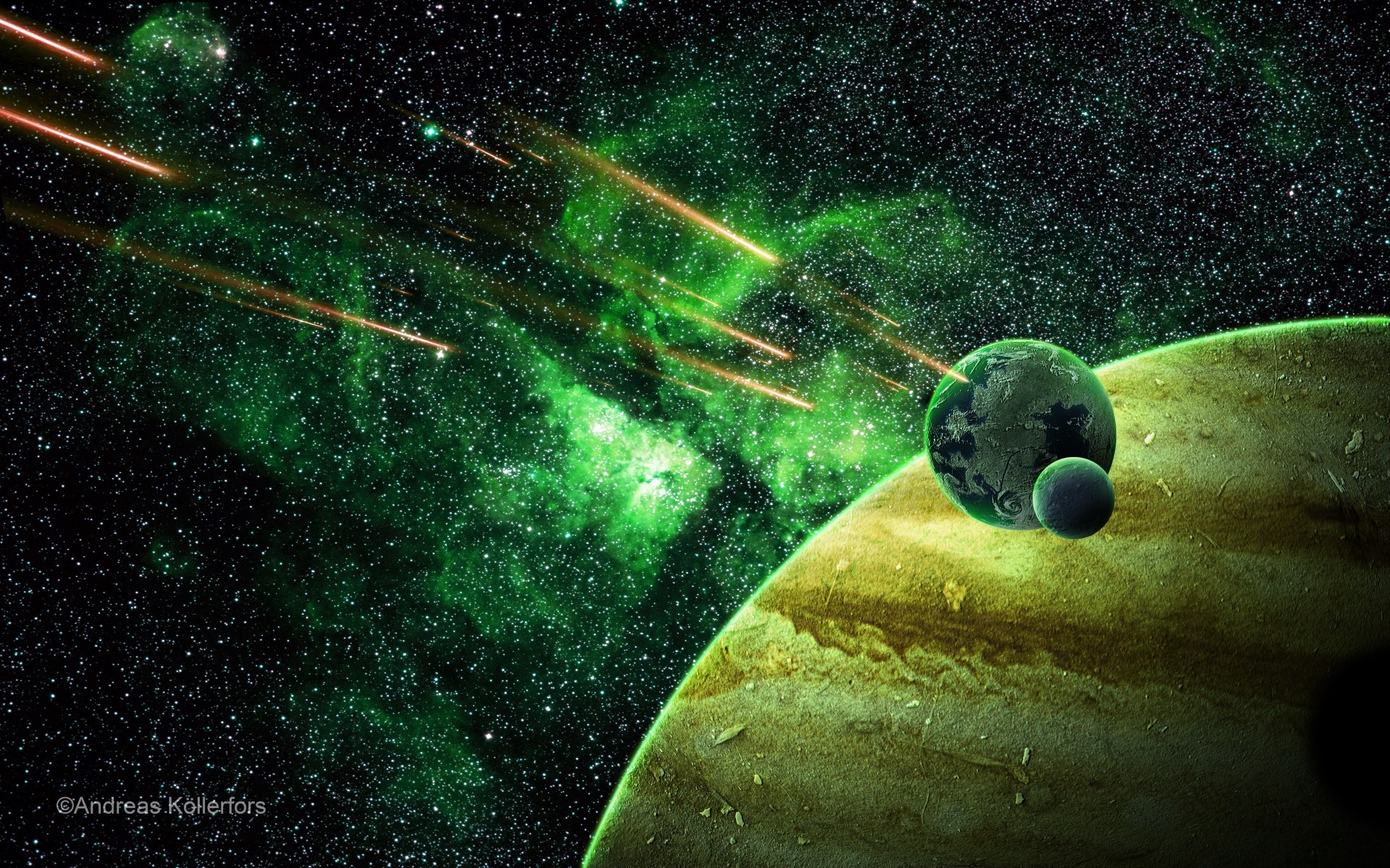 Hermoso arte 3d del espacio en el fondo de la nebulosa roja. imagen de escritorioHermoso arte 3D del espacio en el fondo de la nebulosa roja. Imagen de Escritorio