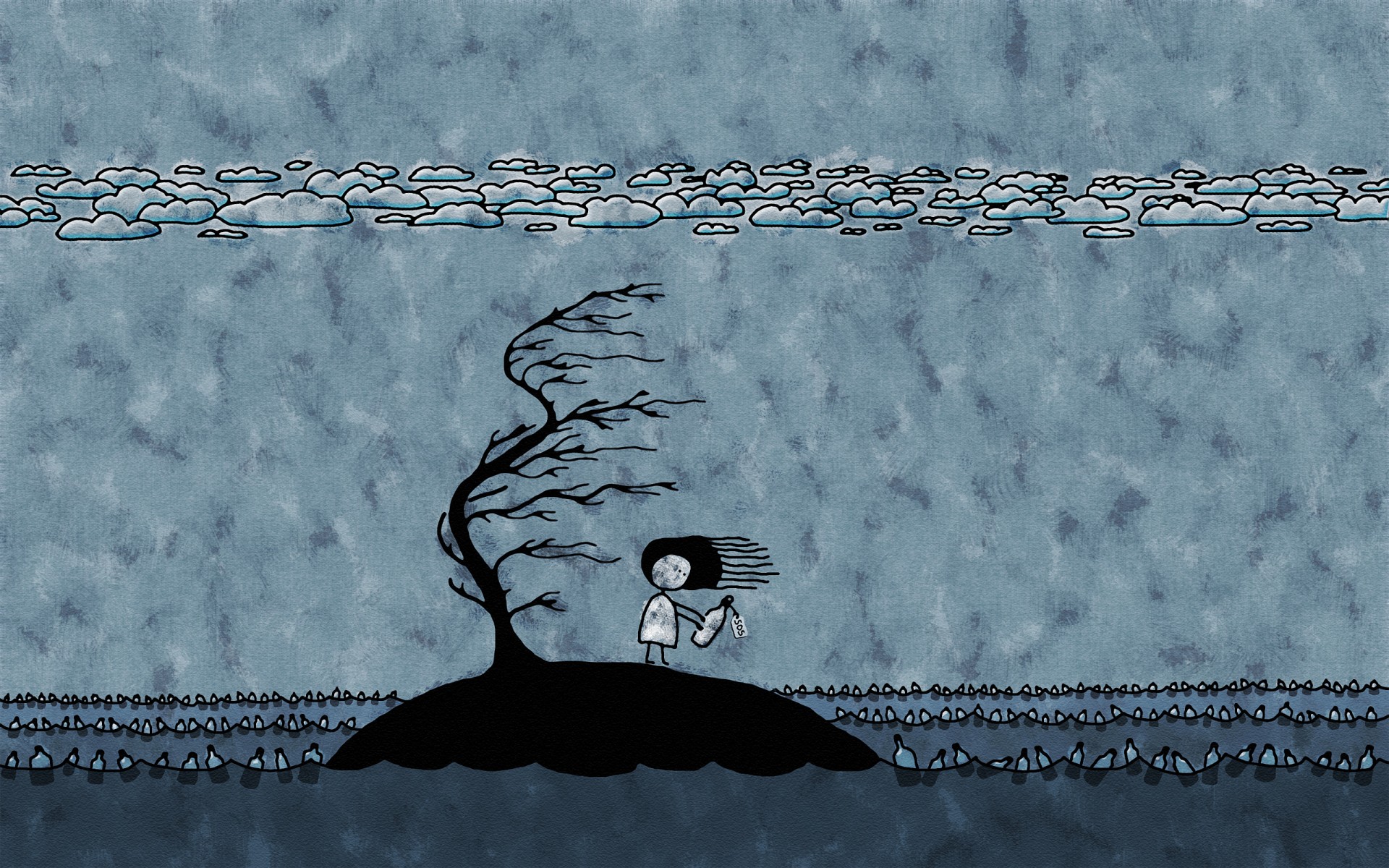 Niña triste en la isla