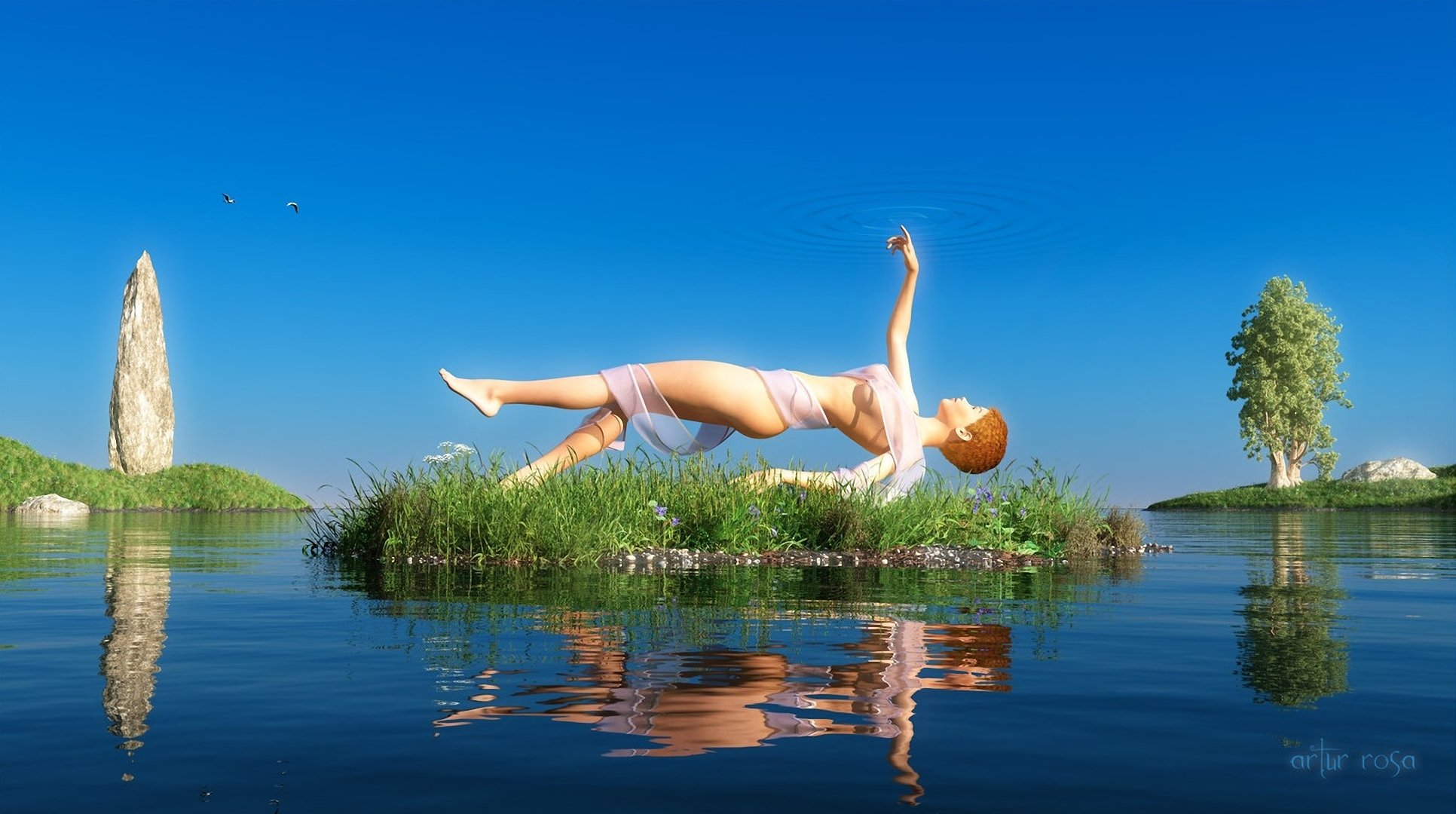 Paisaje con una isla en medio de un lago y un bosquePaisaje con una isla en medio de un lago y un bosque