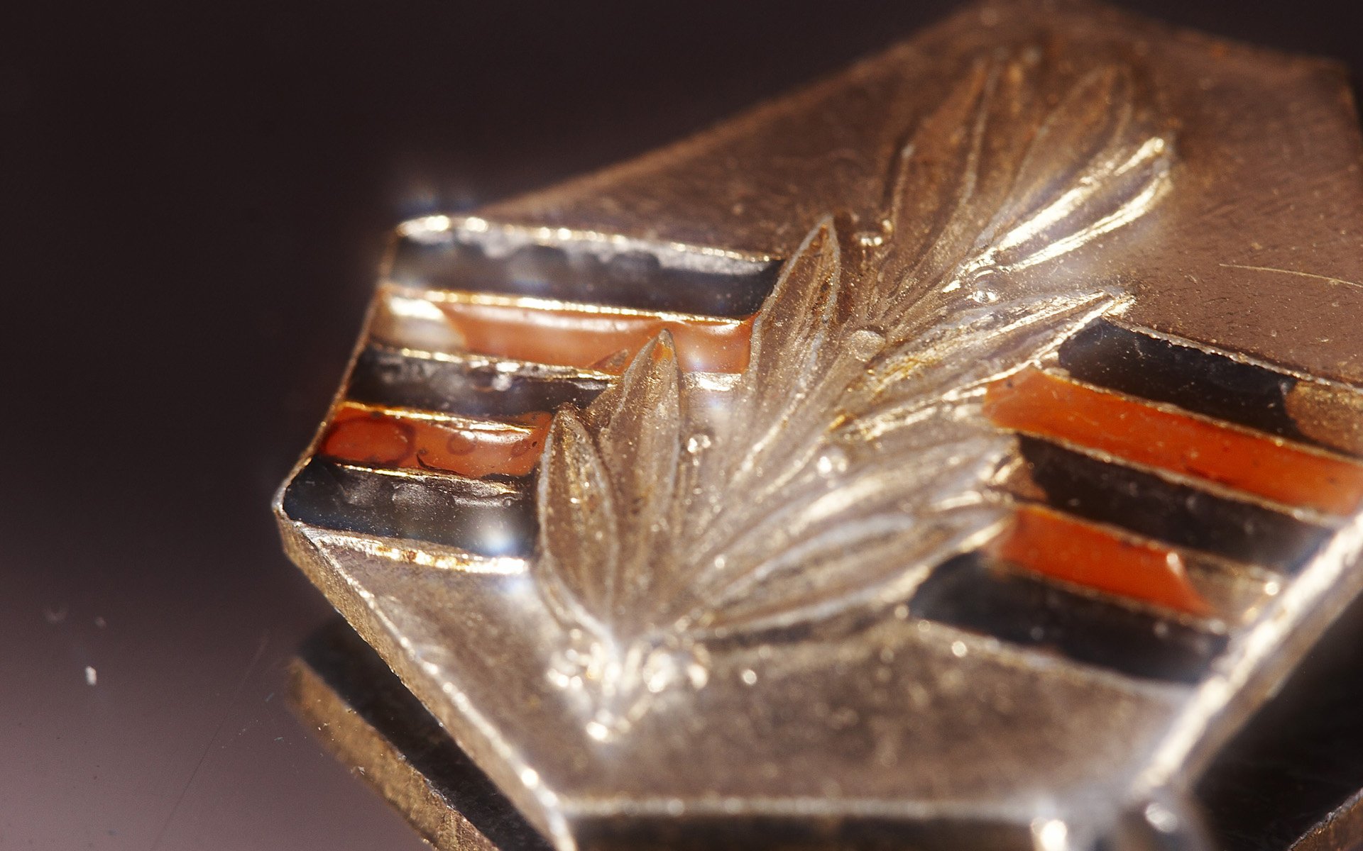Medalla con una ramita en el fondo de la cinta de san jorge para el día de fiesta del 9 de mayoMedalla con una ramita en el fondo de la cinta de San Jorge para el día de fiesta del 9 de mayo