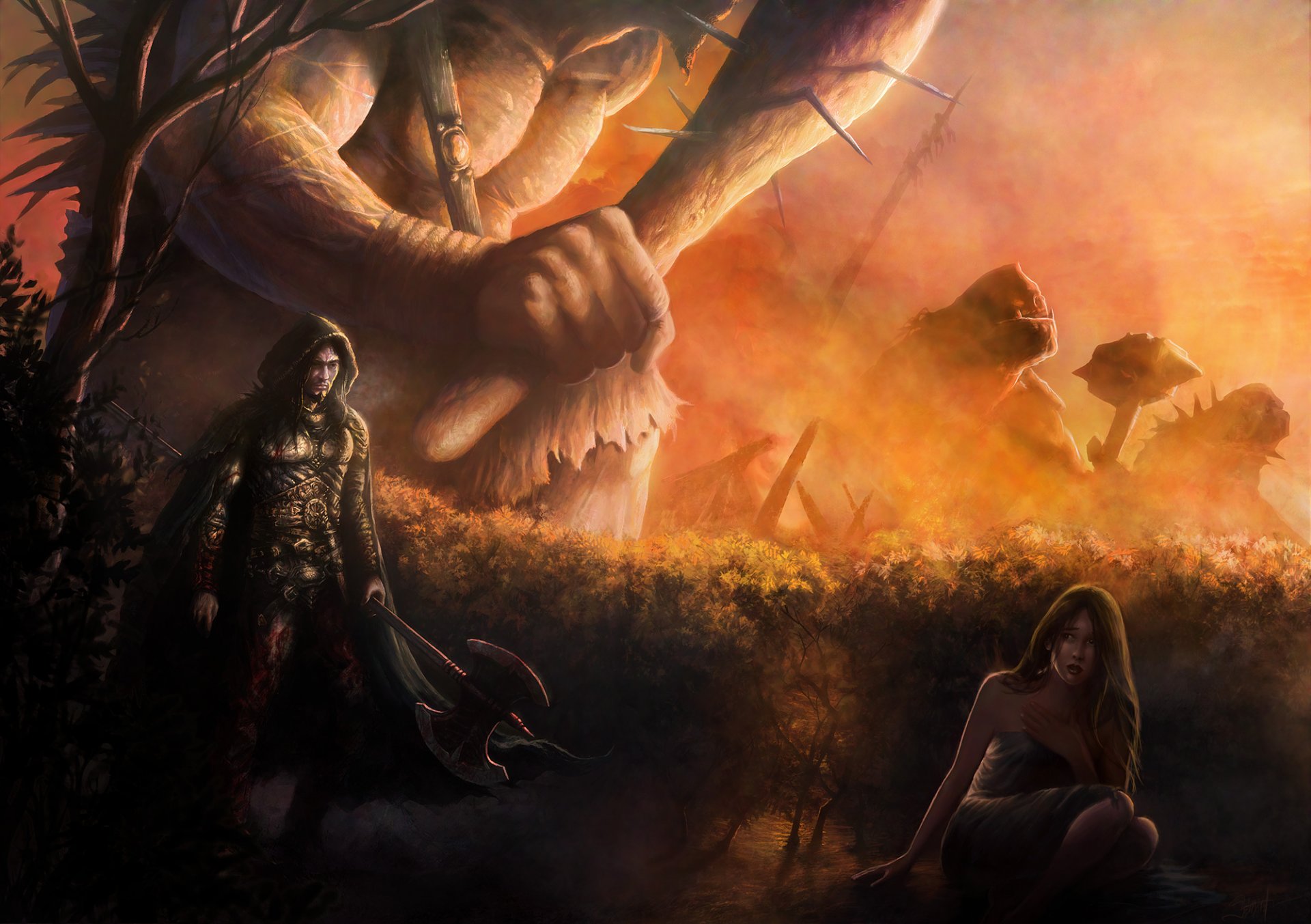 Un gigante con un bastón y un guerrero con un hacha van a salvar a una niña