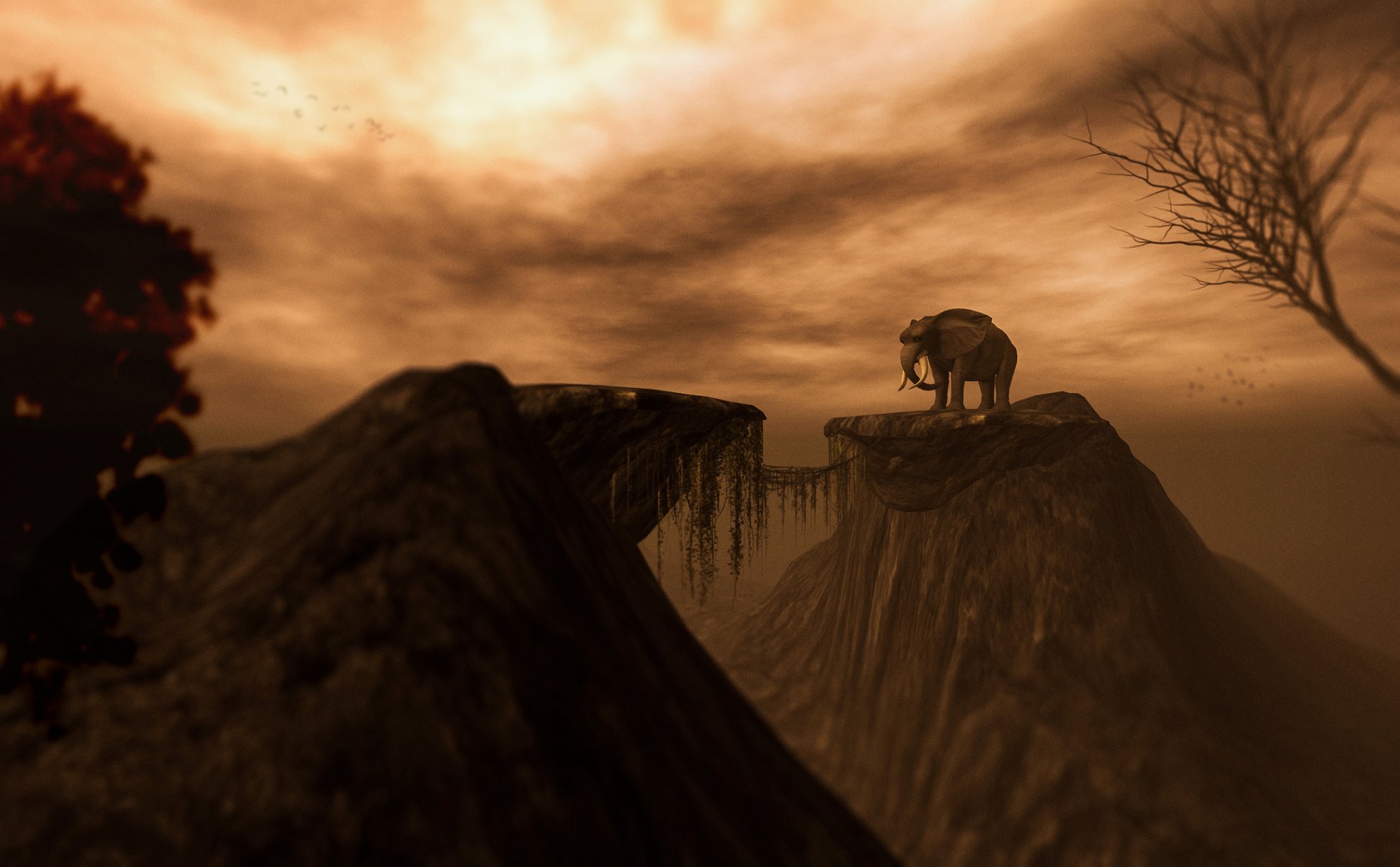 Elefante al lado de un acantilado contra un cielo oscuroElefante al lado de un acantilado contra un cielo oscuro