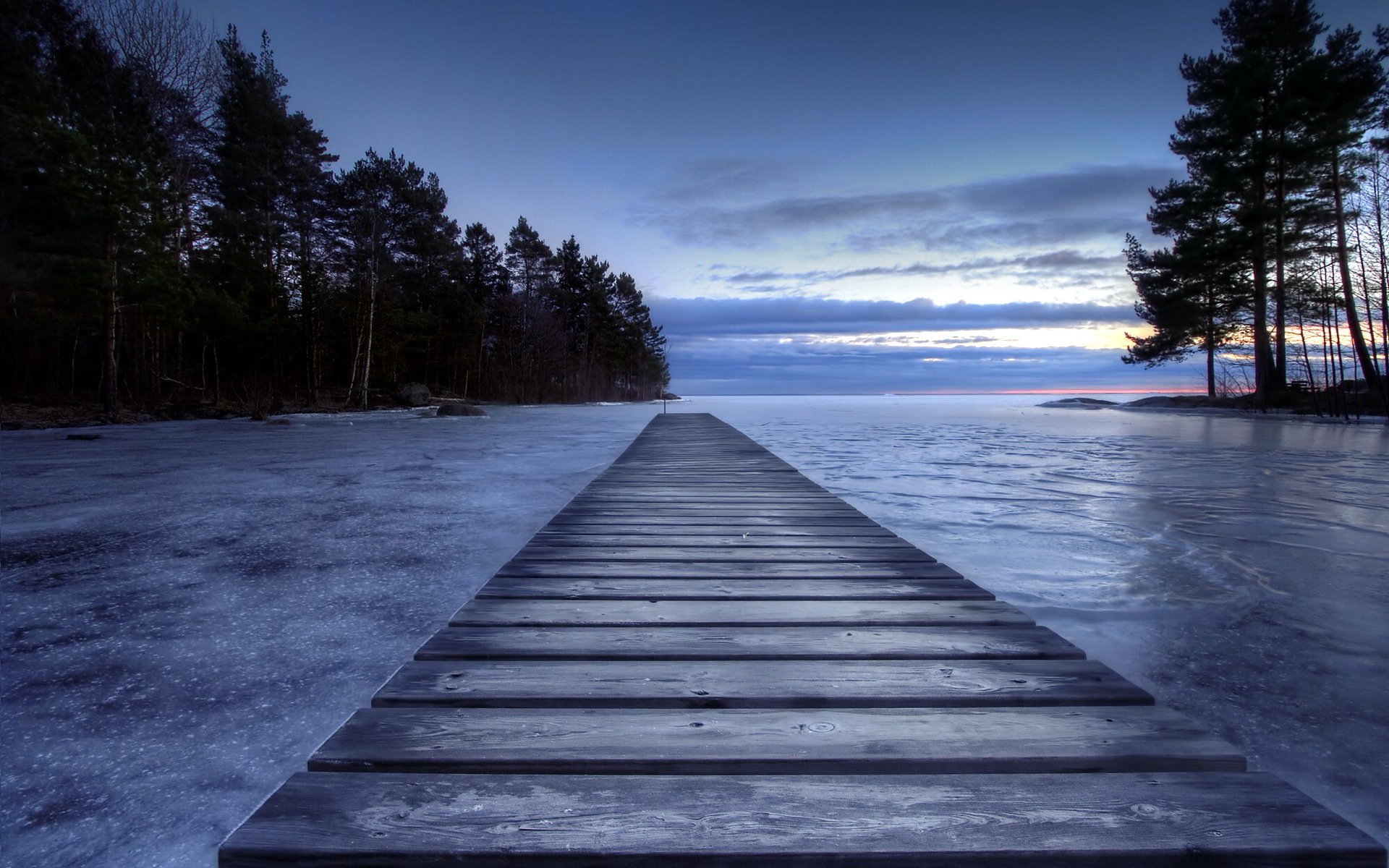 Puente que conduce al lago congelado