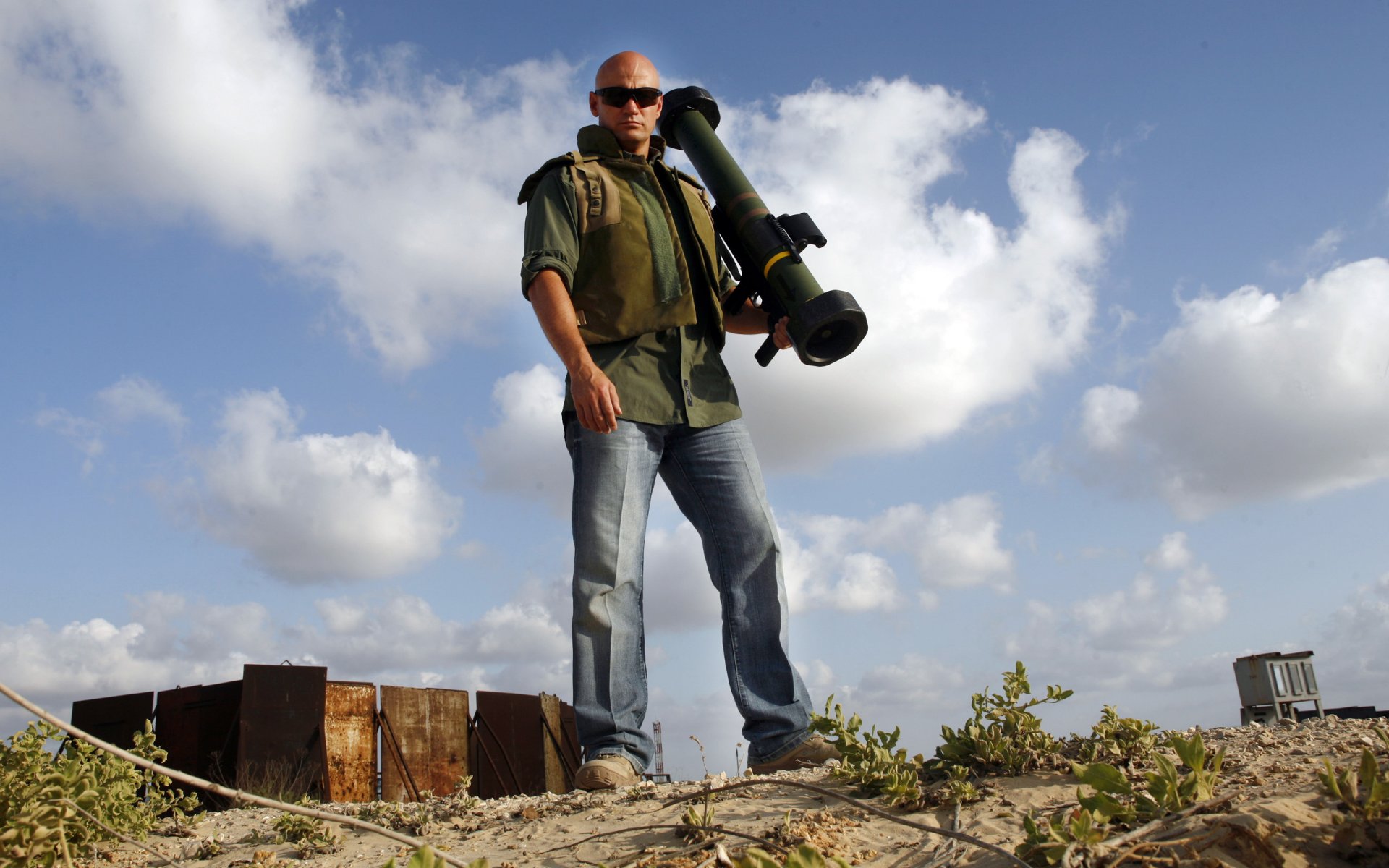Hombre tirador en medio de las nubes