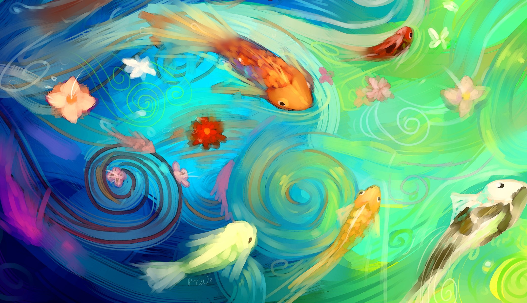 Peces de colores ligeros pinturas al óleo en el género de la abstracciónPeces de colores ligeros pinturas al óleo en el género de la abstracción