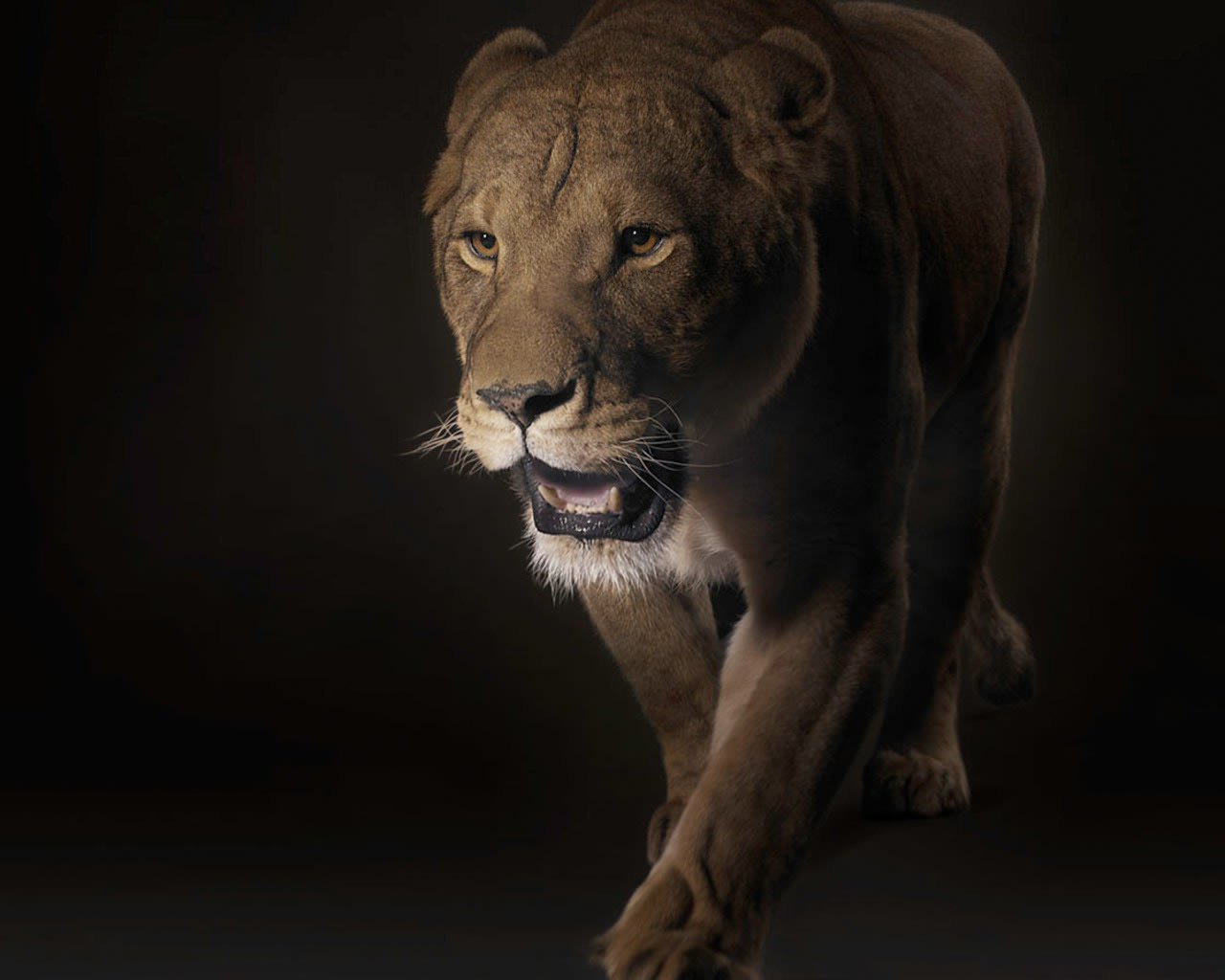 Reflejo de la nave en el ojo de una leona sobre un fondo negroReflejo de la nave en el ojo de una Leona sobre un fondo negro