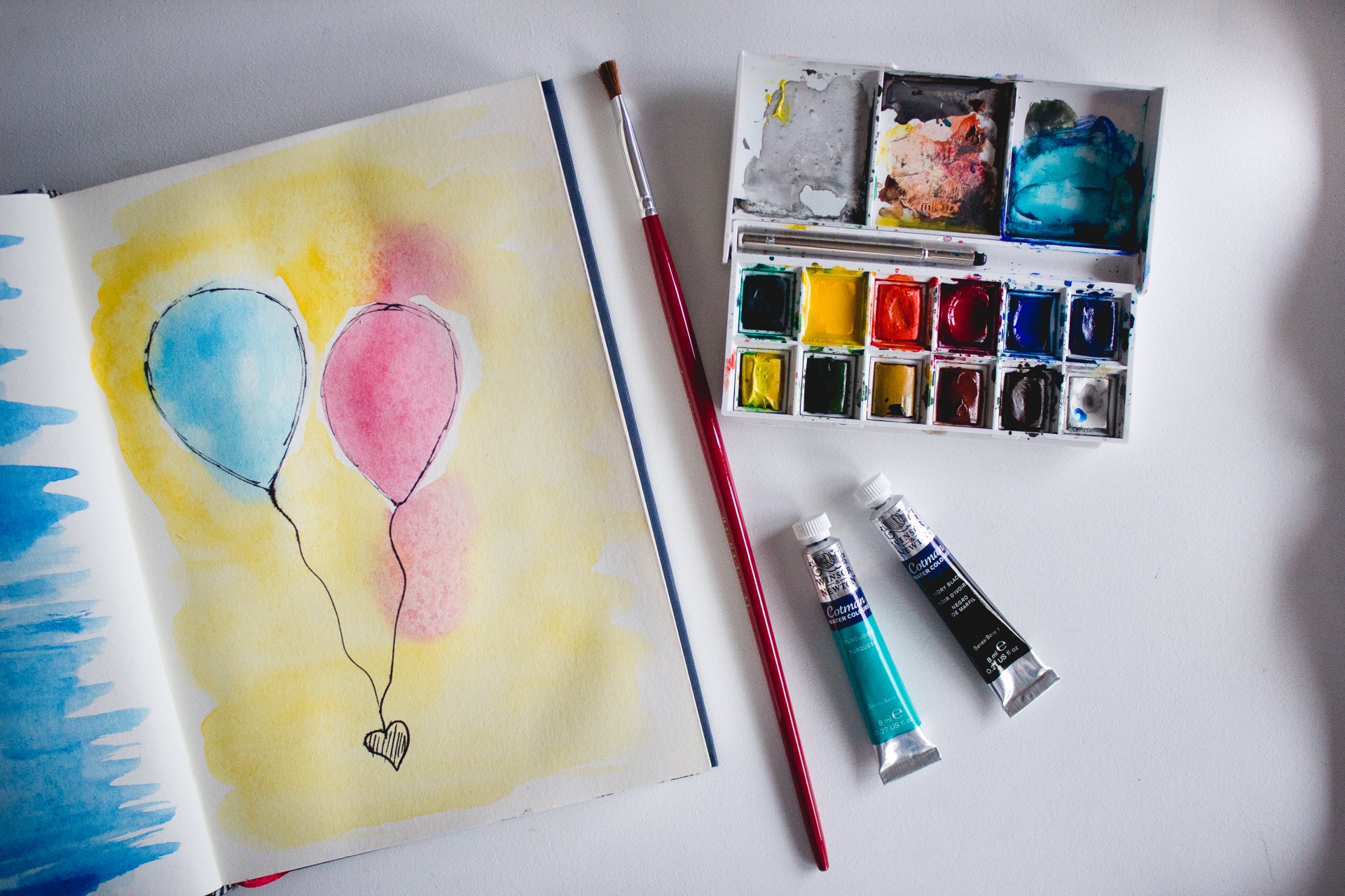 Corazón rojo dibujado a mano envuelto con una cinta de aerosol azul