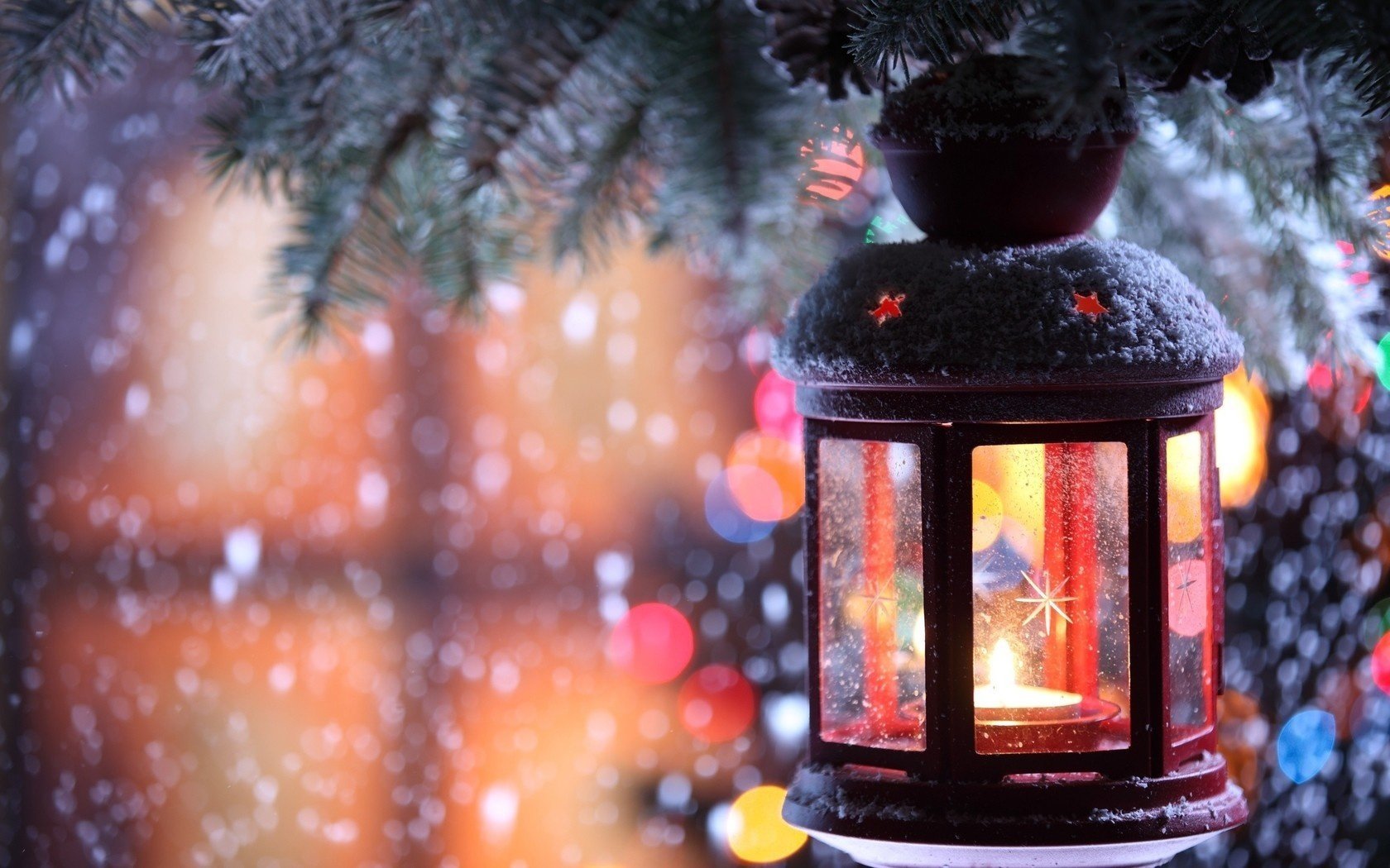 Cuento de hadas en el bosque de invierno linterna en el árbol de navidadCuento de hadas en el bosque de invierno linterna en el árbol de Navidad