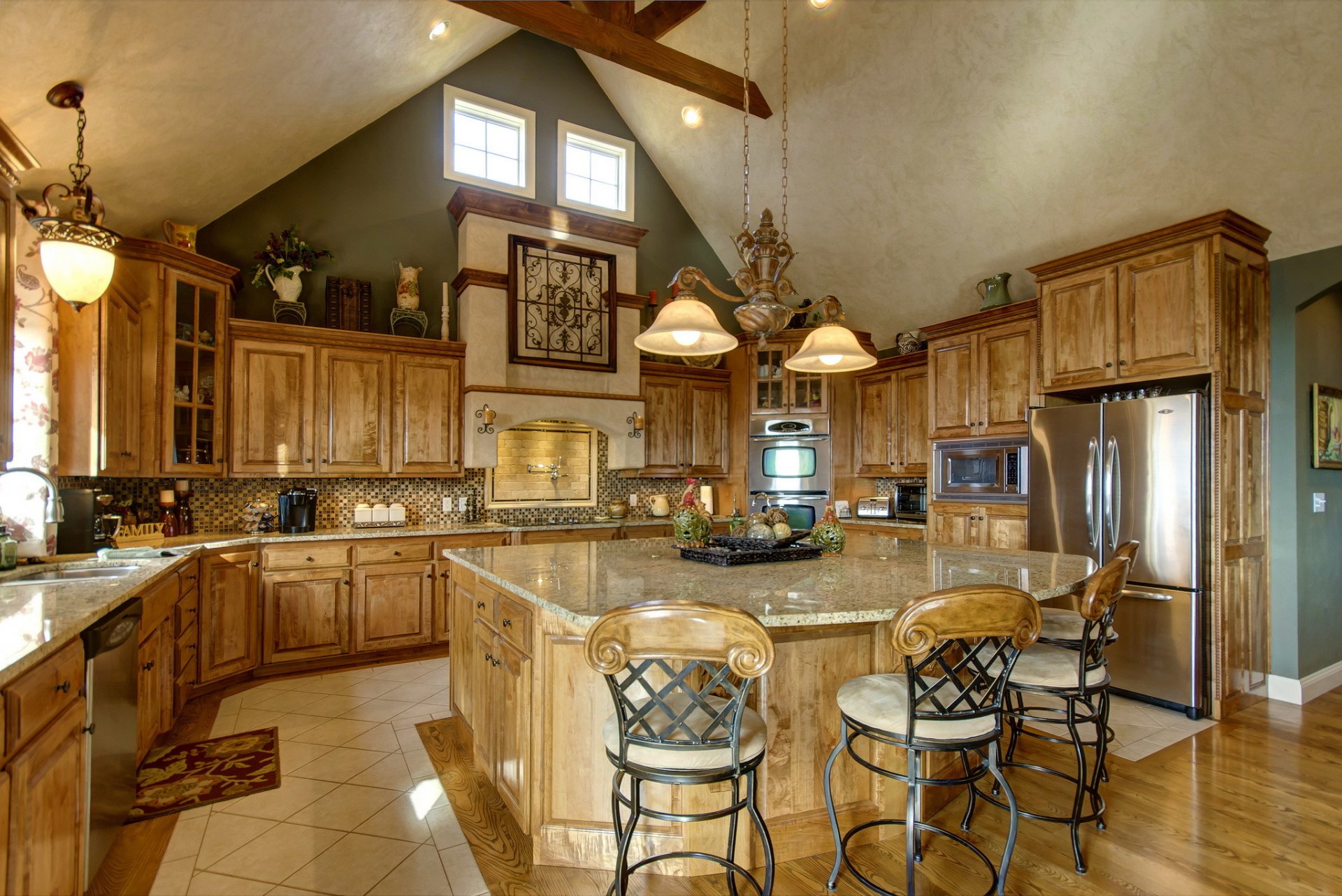 Interior de la cocina en el estilo de alta tecnología material de maderaInterior de la cocina en el estilo de alta tecnología material de madera