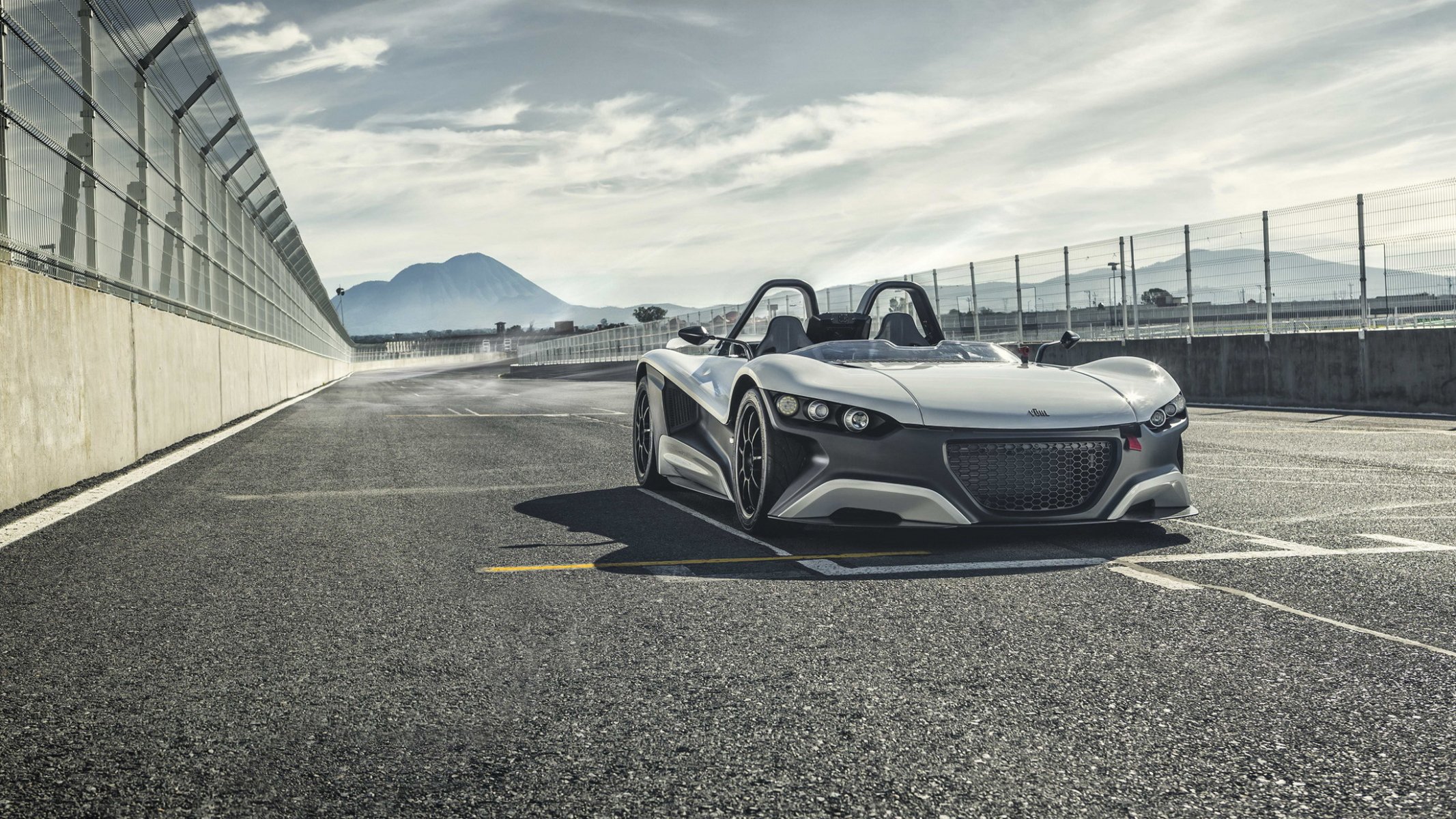 Lamborghini blanco en la pista de carreras vuela levantando polvo