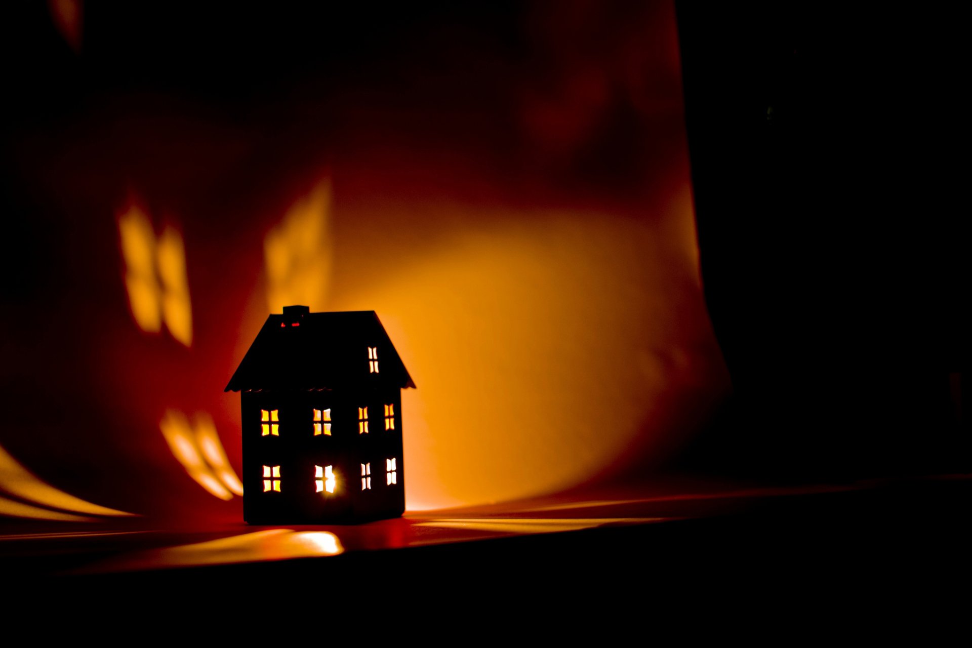 Un vaso de whisky y hielo iluminado por la luz de la Bengala