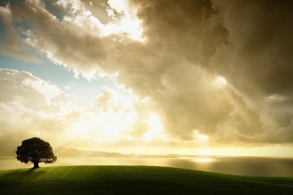 Luz solar que ilumina el árbol