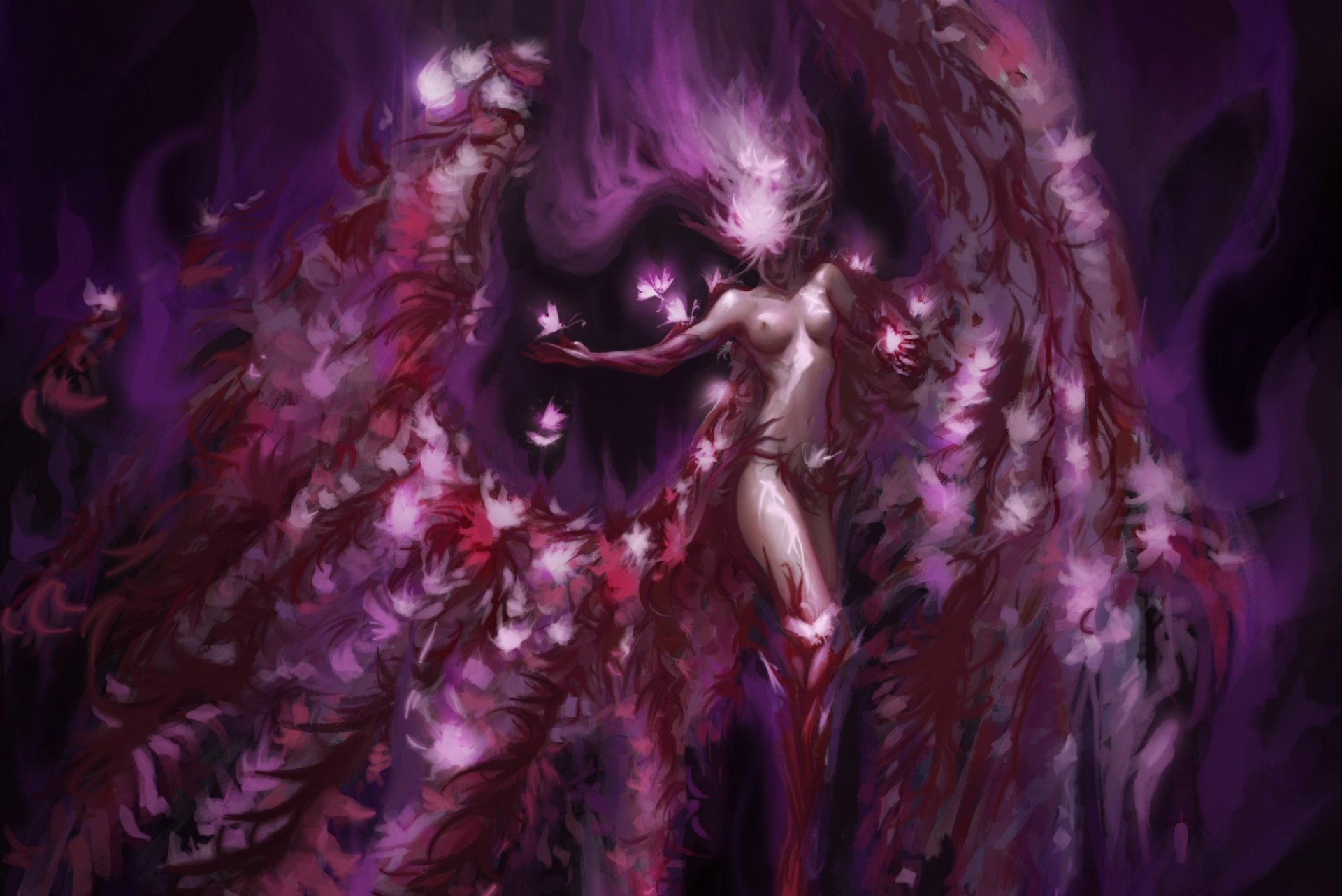 Dibujo de una criatura con alas. criatura ángel o demonioDibujo de una criatura con alas. Criatura ángel o demonio