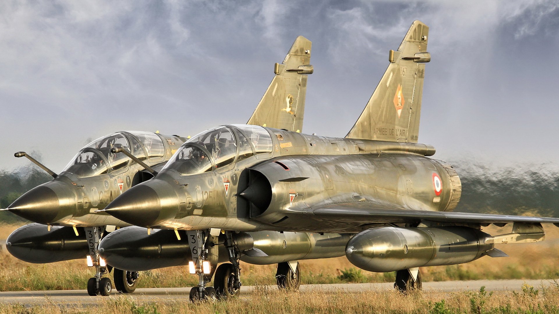 Aeródromo en el fondo de las montañas con aviones de combate militares voladoresAeródromo en el fondo de las montañas con aviones de combate militares voladores