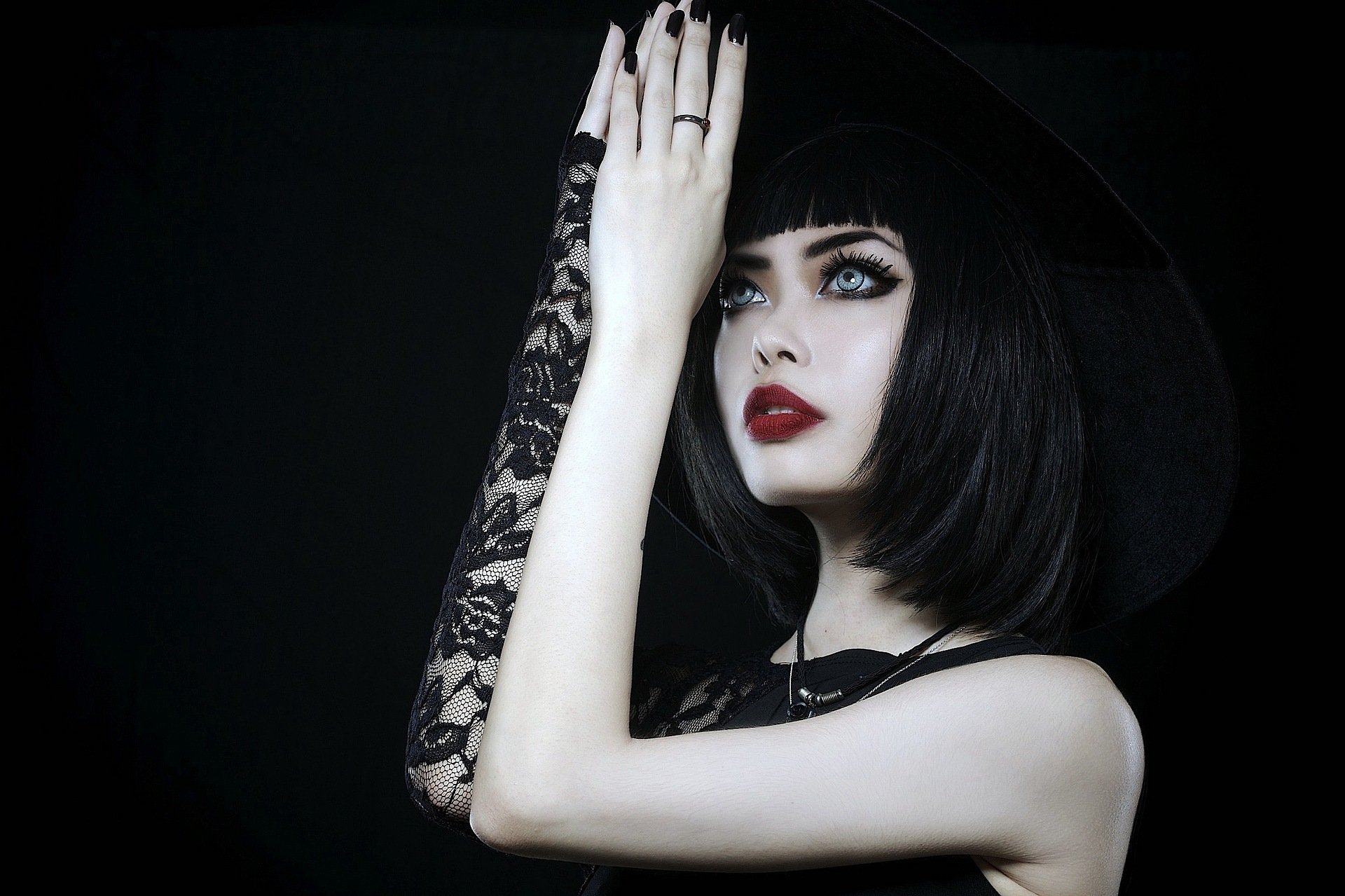 Joven morena modelo de apariencia con los brazos flexionados levantadosJoven morena modelo de apariencia con los brazos flexionados levantados