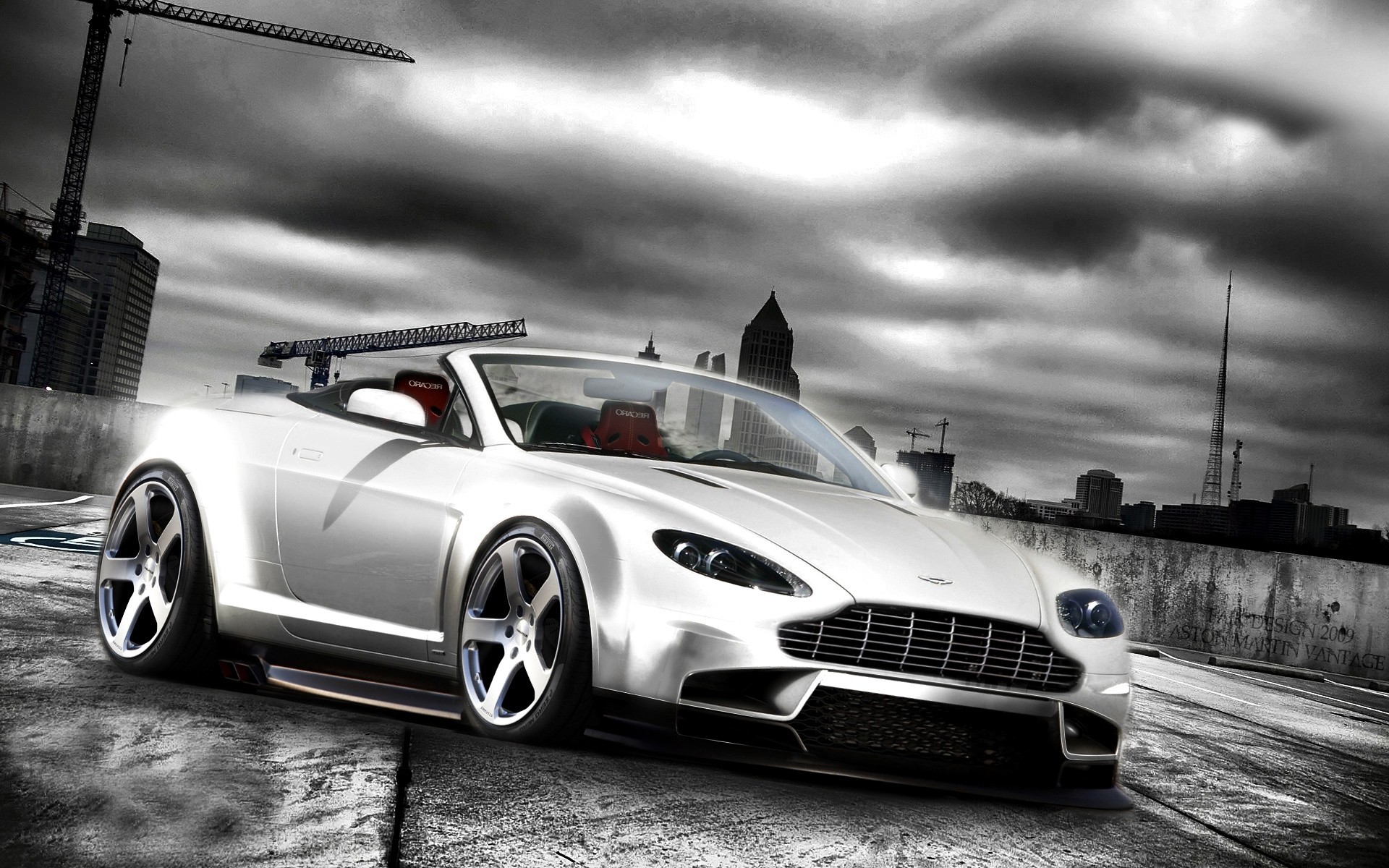 Un coche coupé en un verdadero color blanco contra el fondo de la ciudadUn coche coupé en un verdadero color blanco contra el fondo de la ciudad