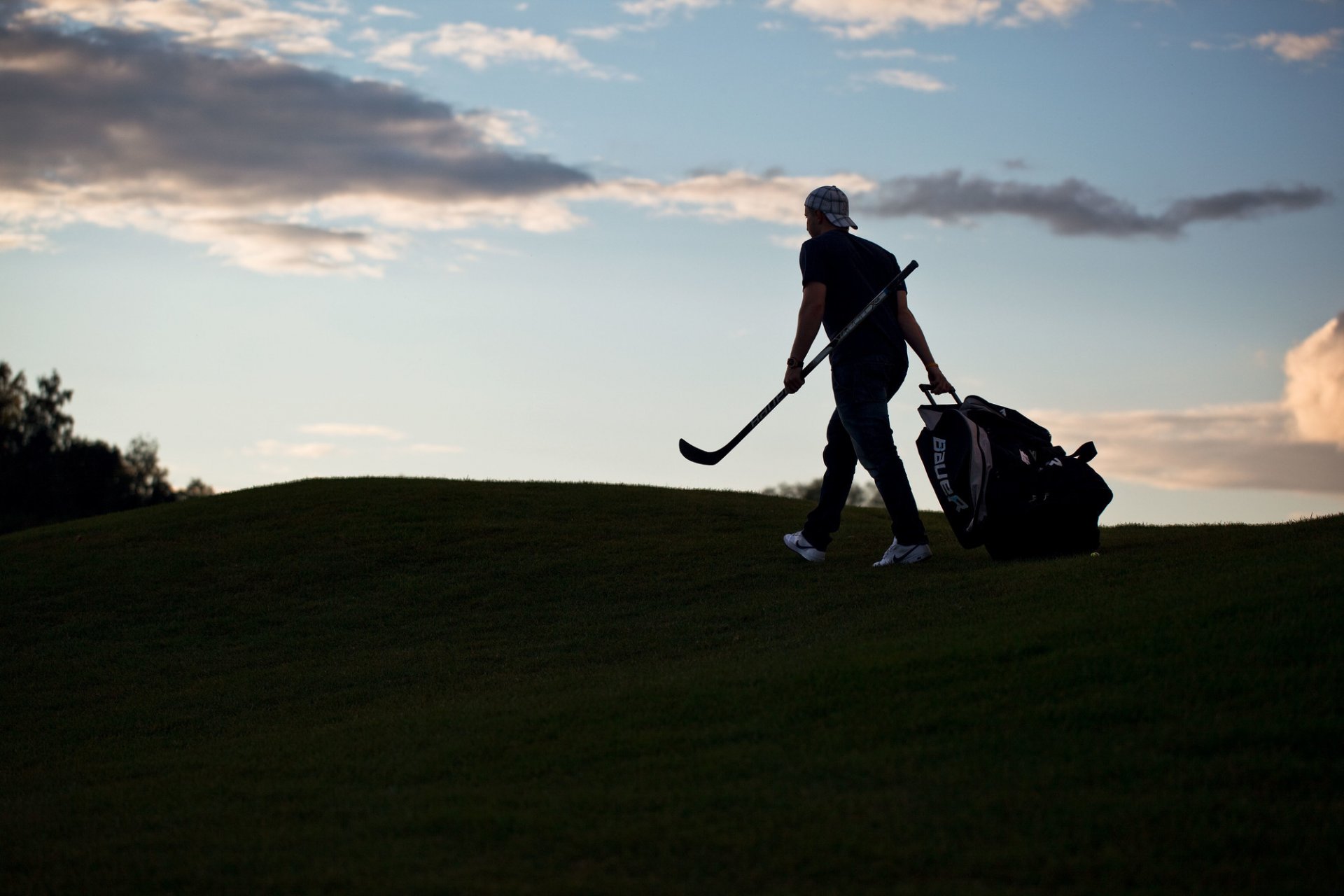 Sobre un fondo brillante, el cielo es la imagen de un atleta con un palo