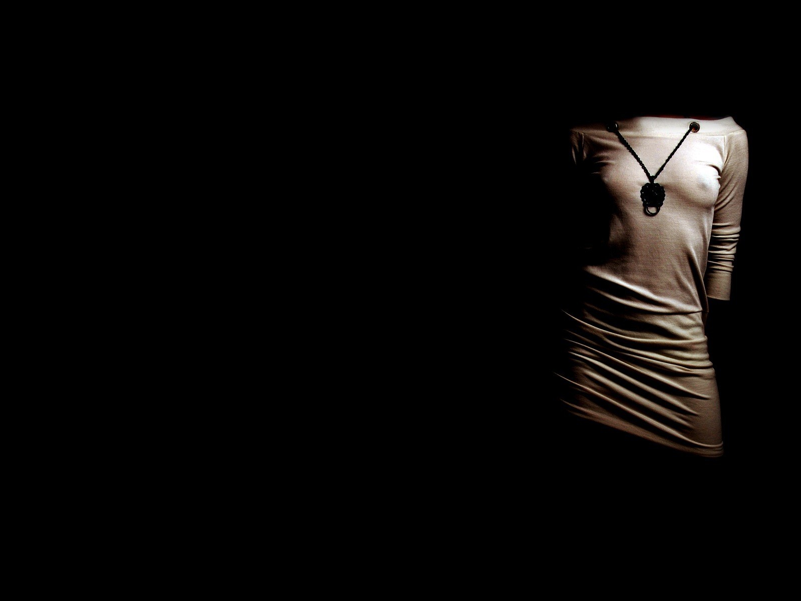 Cuerpo de mujer con un elegante vestido sobre un fondo negro