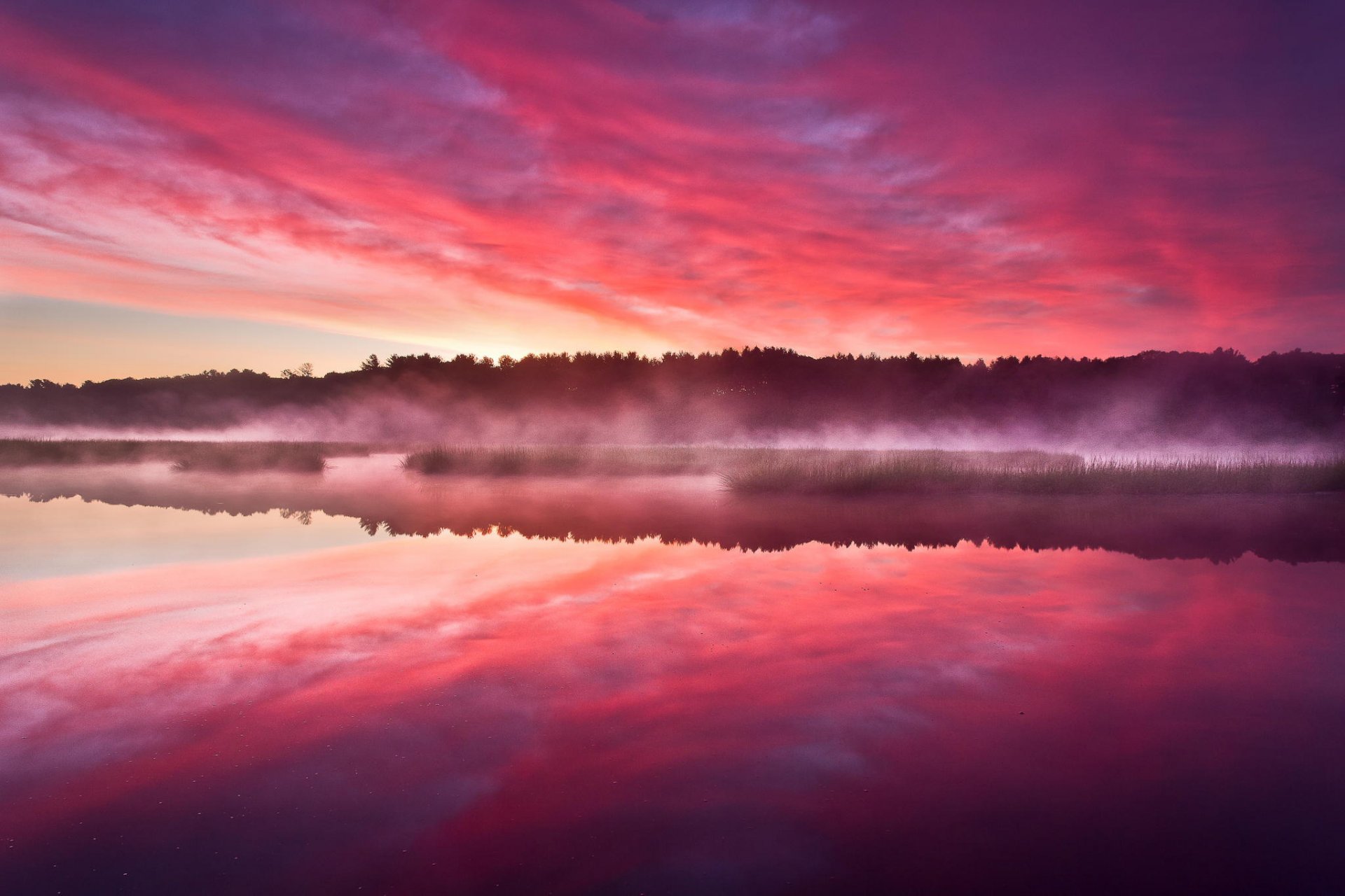 Amanecer ardiente junto al lago
