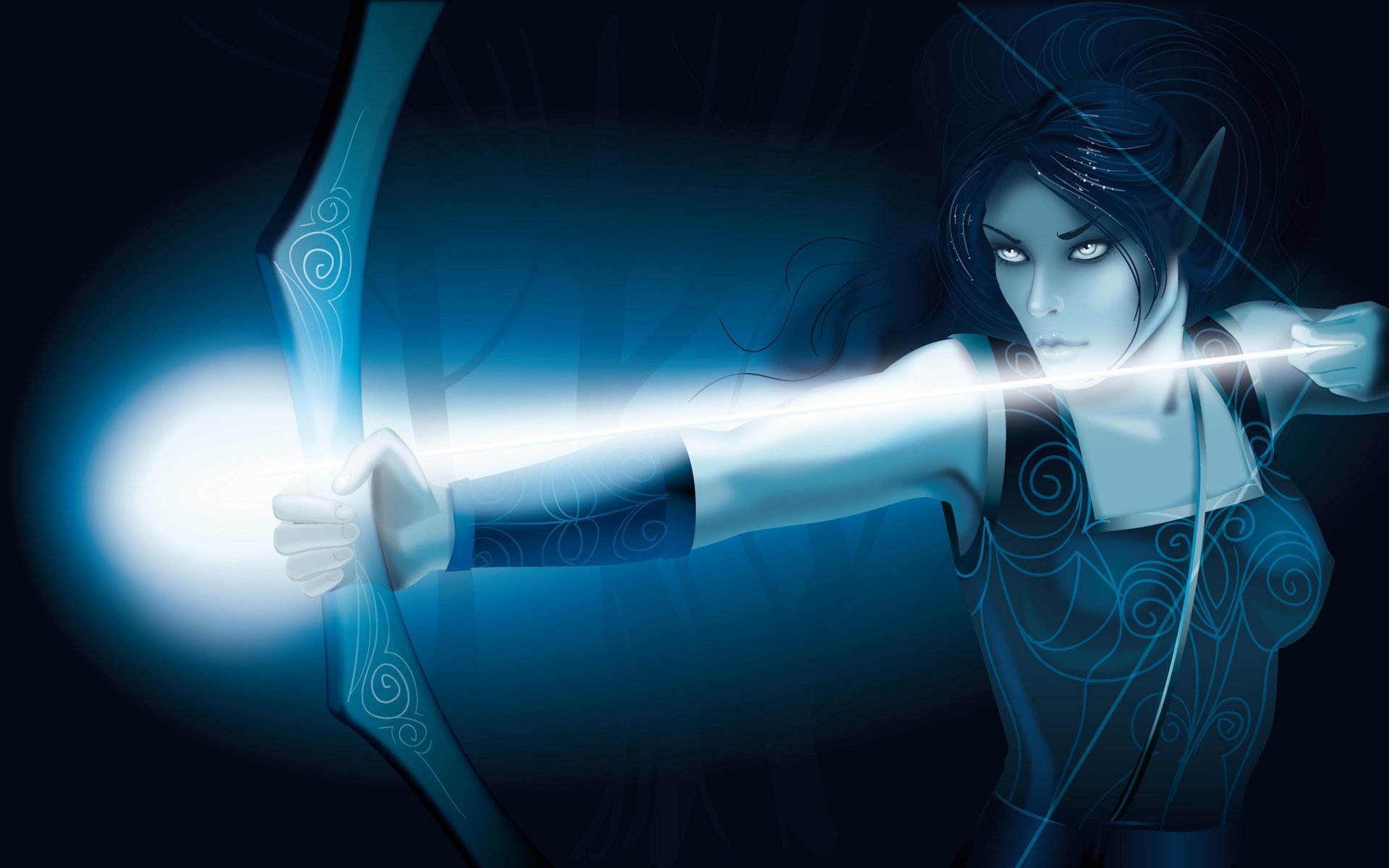 Elf dispara una flecha con un arco