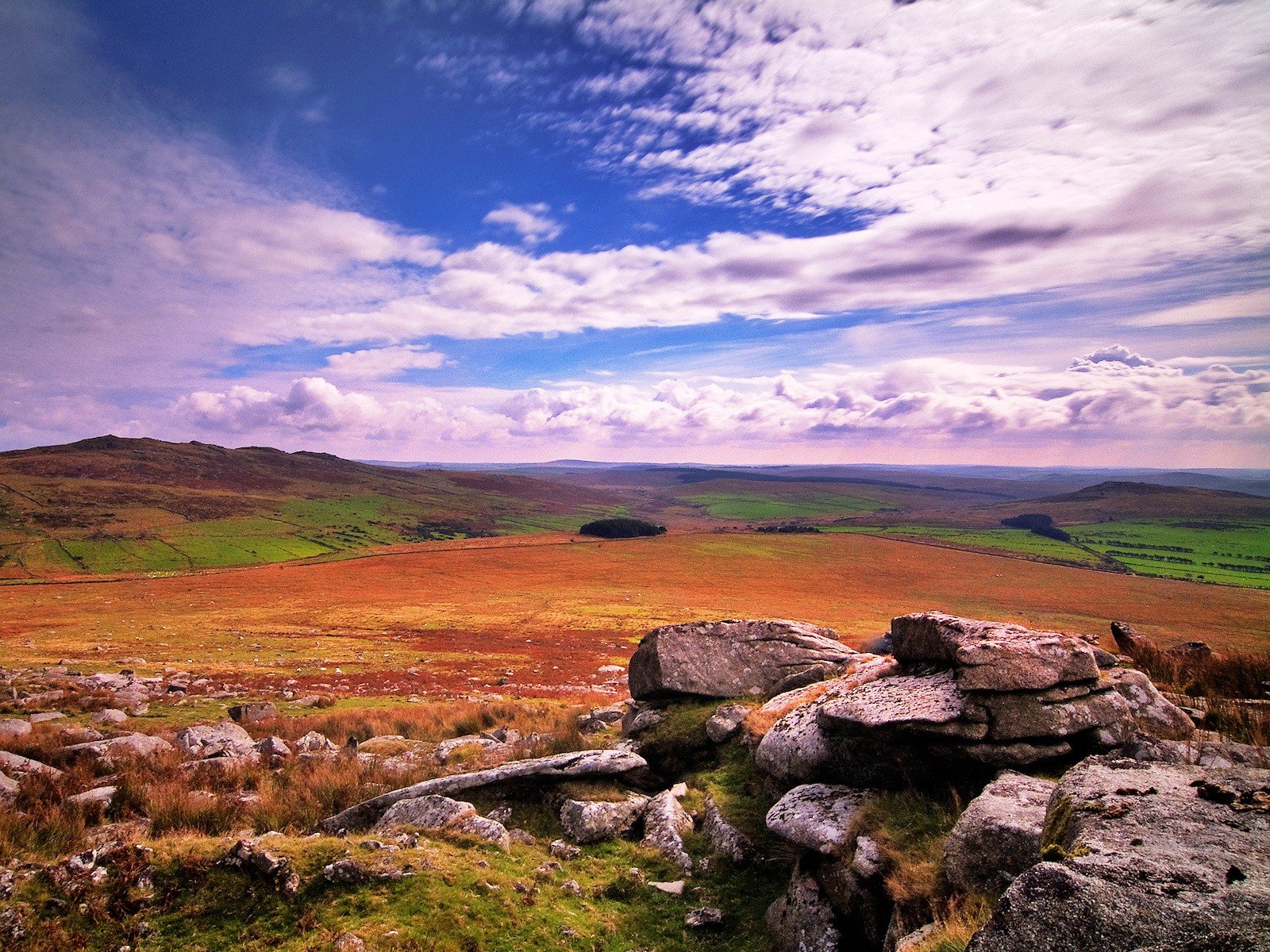 Cielo azul. Nubes y campo