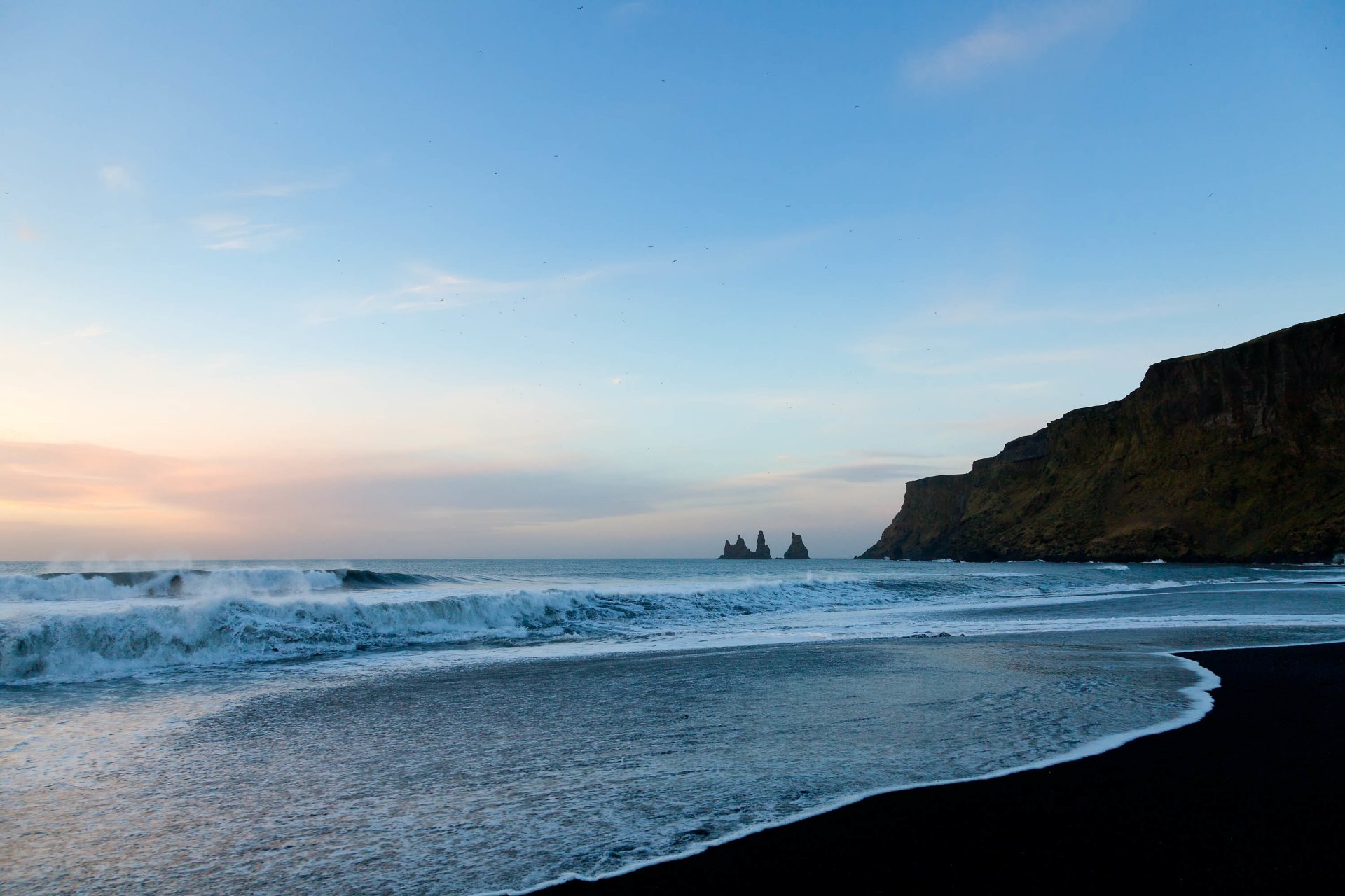 Puesta de sol roja sobre las olas del mar y las rocas que sobresalen del aguaPuesta de sol roja sobre las olas del mar y las rocas que sobresalen del agua