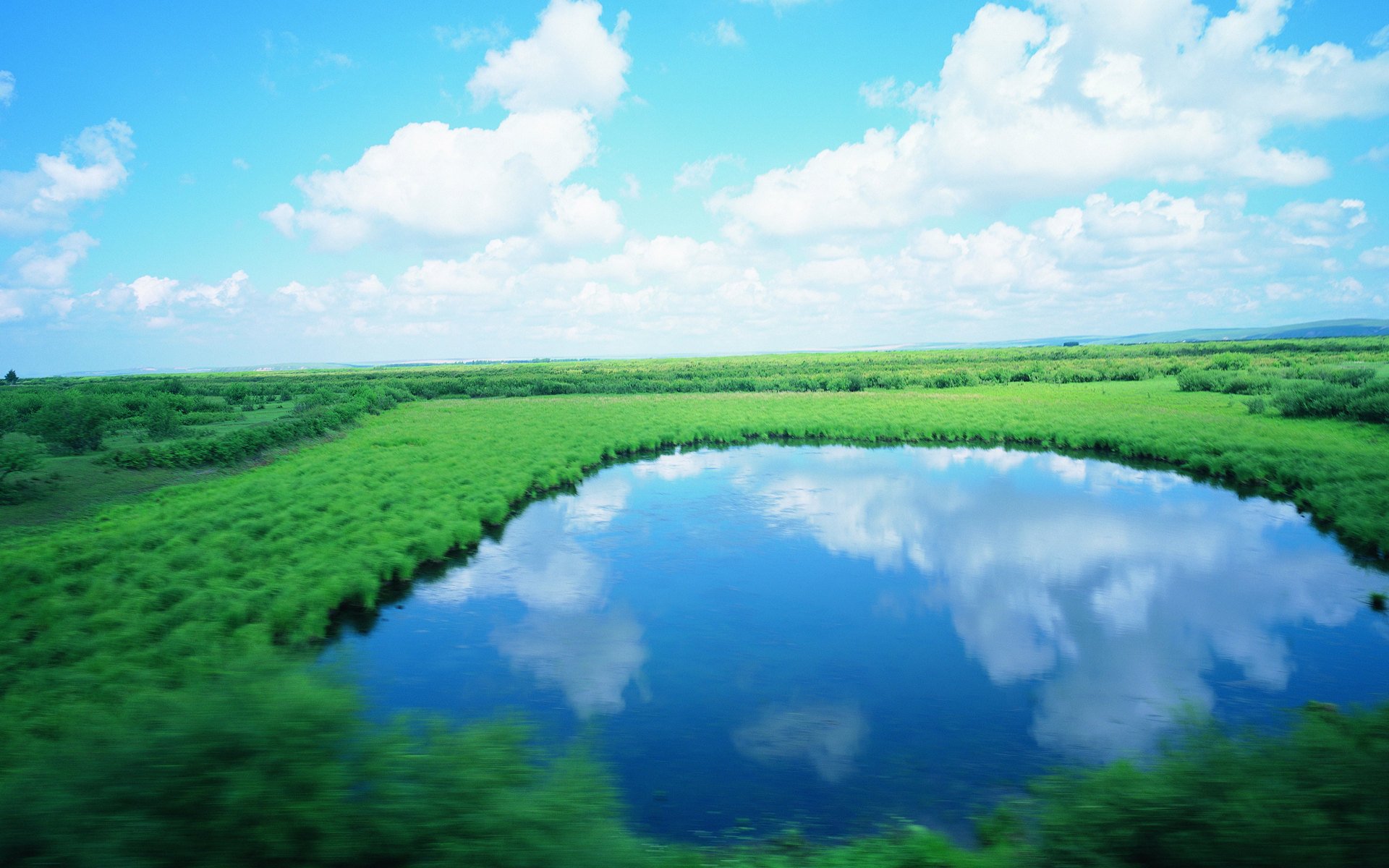 Lago en un valle con cielo azul