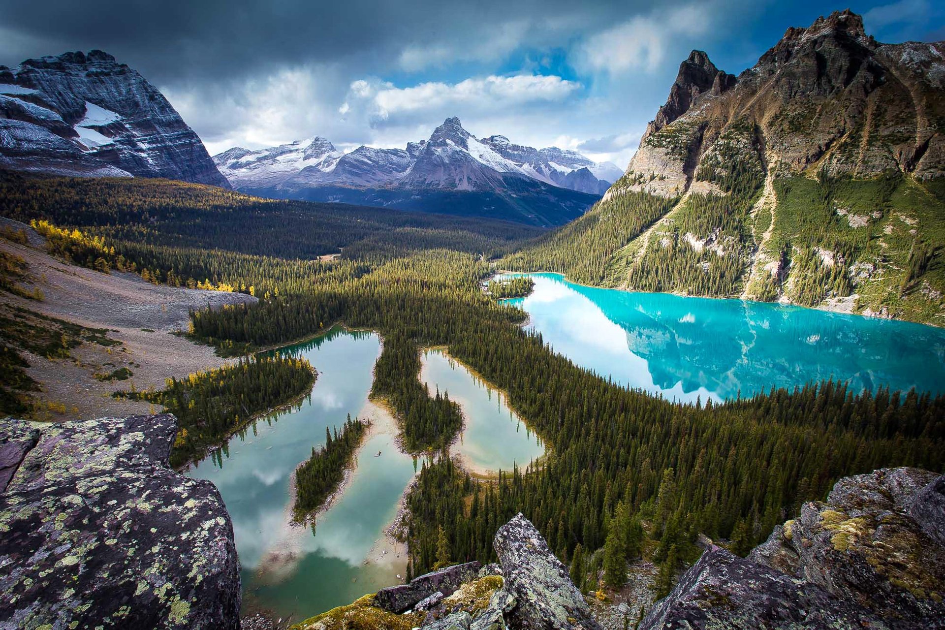 Vagabundo en el valle de la noche entre las rocas sombrías