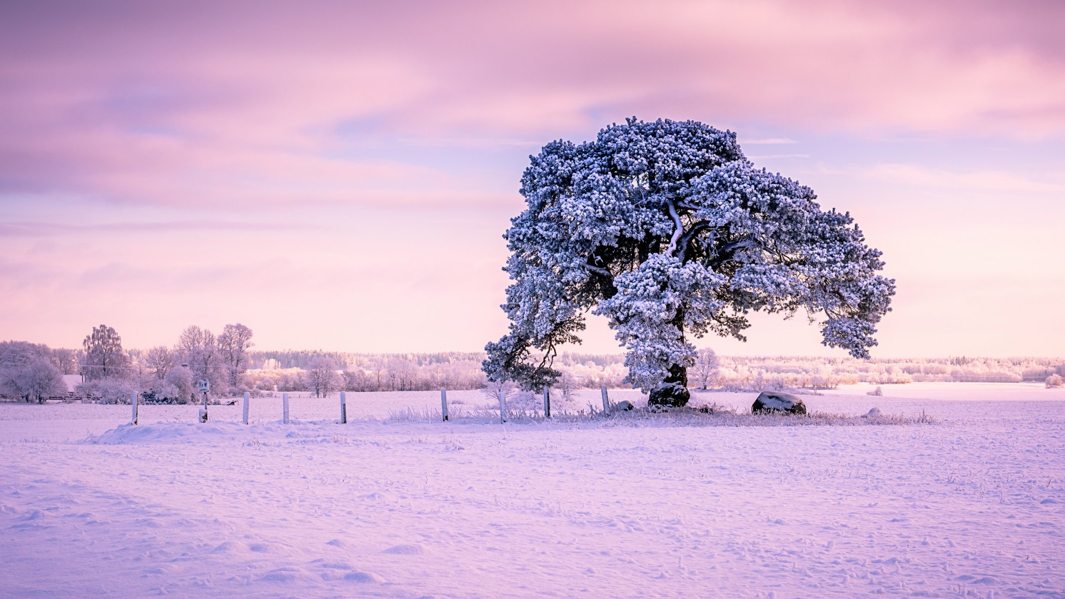 Pintura de invierno de la naturaleza, cerca, árboles en plataPintura de invierno de la naturaleza, cerca, árboles en plata