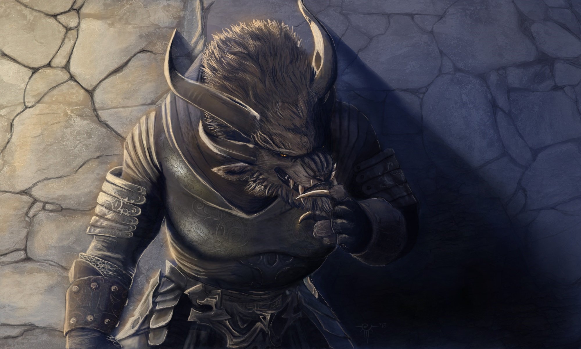 Monstruo con cuernos en la pared