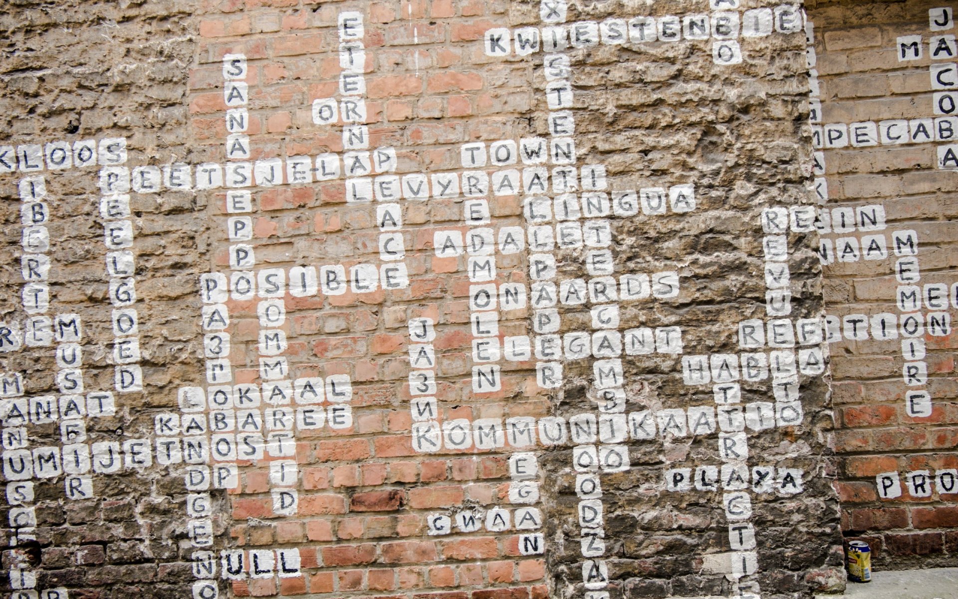 Una pared de color Burdeos con rayas blancas, en la que se ven rejas