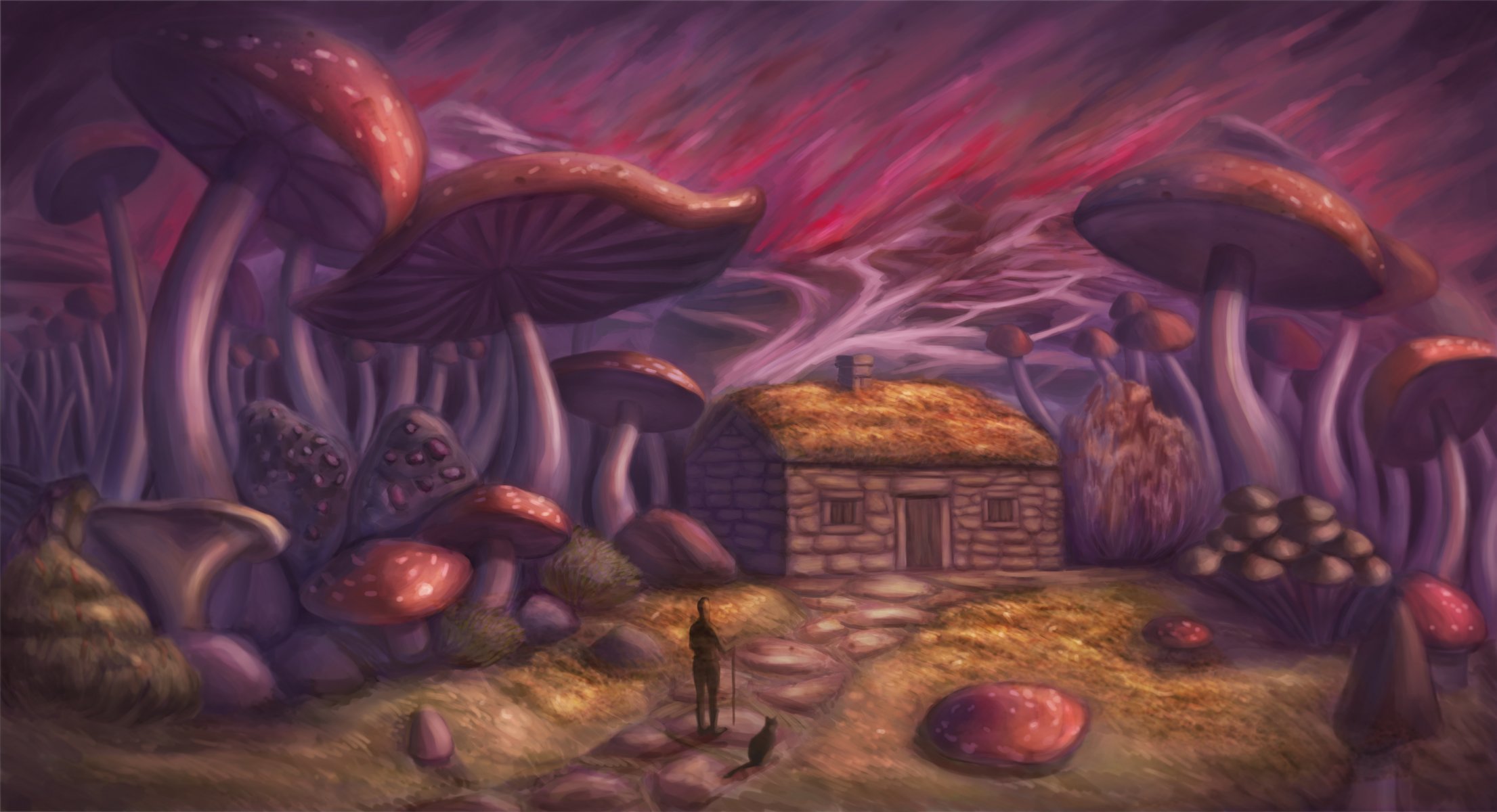 Arte fantástico que representa a un hombre sentado en una extraña criatura con orejas grandesArte fantástico que representa a un hombre sentado en una extraña criatura con orejas grandes