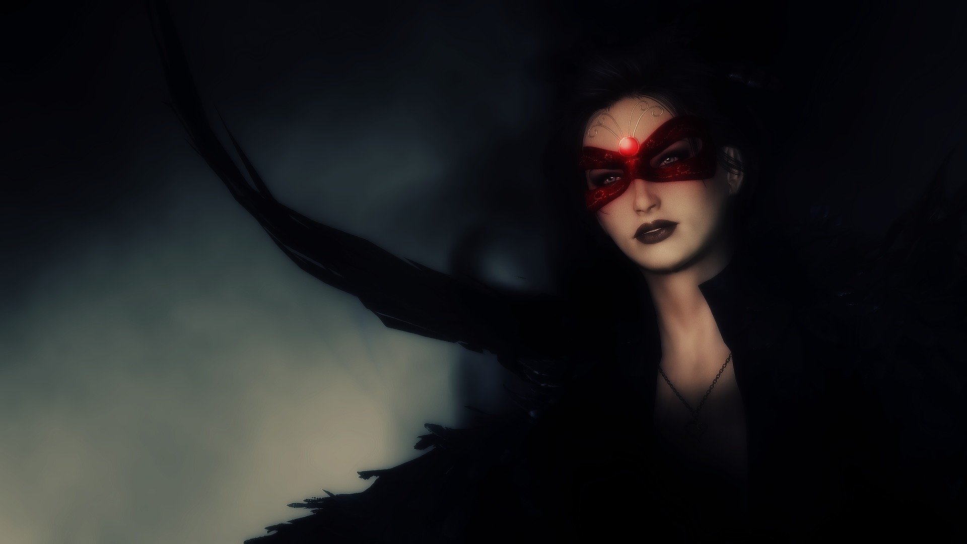 Una chica con alas puso su mirada siniestra en la distanciaUna chica con alas puso su mirada siniestra en la distancia