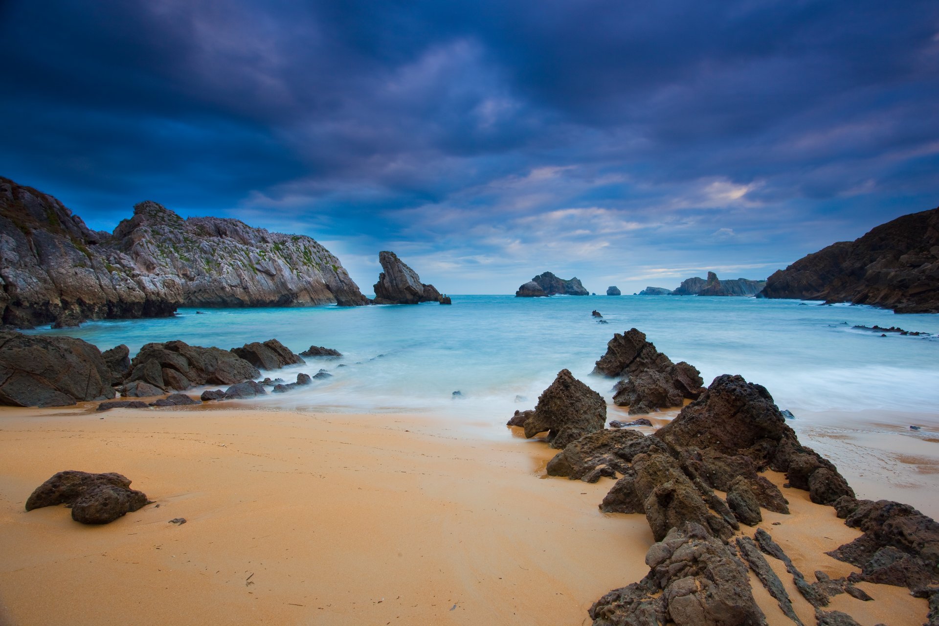 Estrellas de mar y conchas marinas en una playa de arenaEstrellas de mar y conchas Marinas en una playa de arena