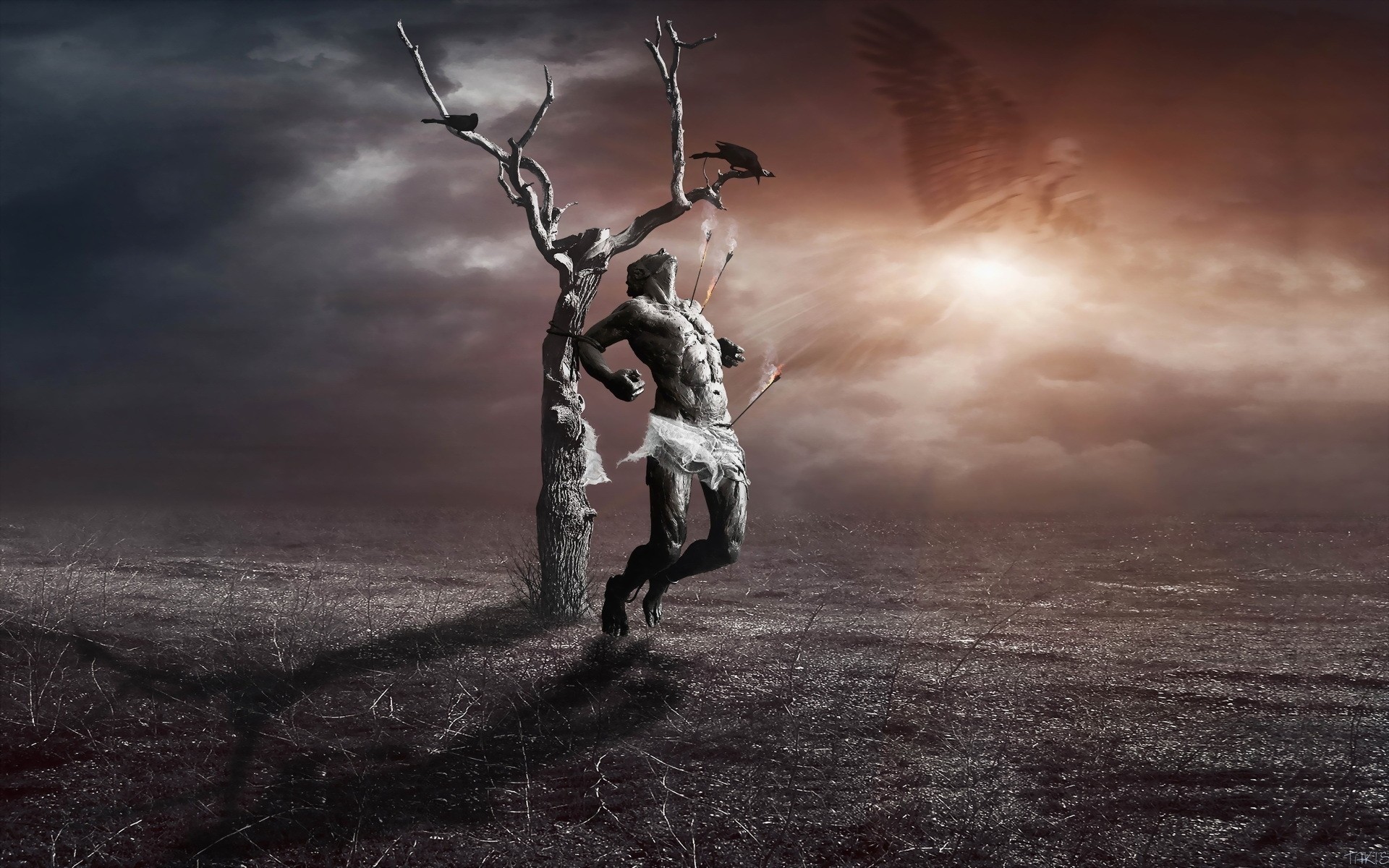 Guerrero de alas de fuego lucha con un demonio monstruosoGuerrero de alas de fuego lucha con un demonio monstruoso