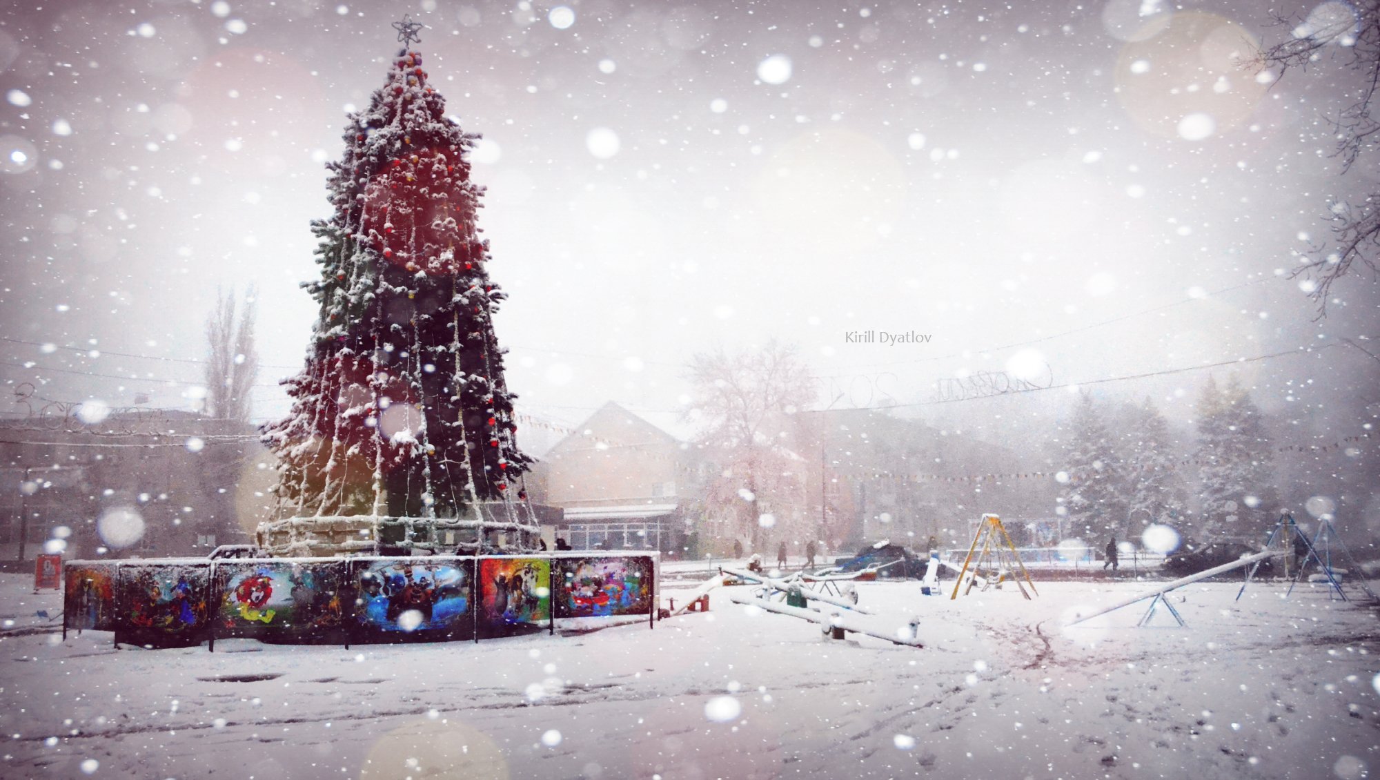 Árbol de navidad decorado en la plaza de la ciudadÁrbol de Navidad decorado en la Plaza de la ciudad