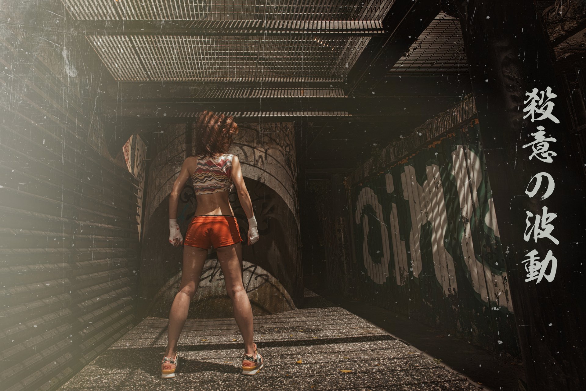 Chica con orejas de gato y sostiene un puño cerradoChica con orejas de gato y sostiene un puño cerrado