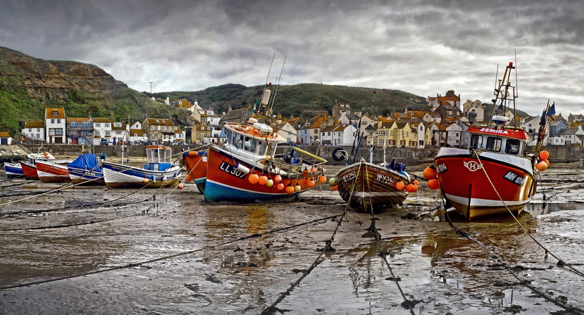 Imagen de un barco y barcos que siguen a la ciudadImagen de un barco y barcos que siguen a la ciudad