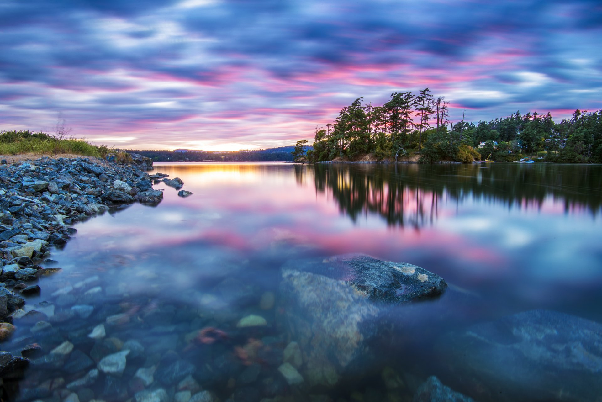 Reflejo de la puesta de sol en el río, cerca de la casaReflejo de la puesta de sol en el río, cerca de la casa