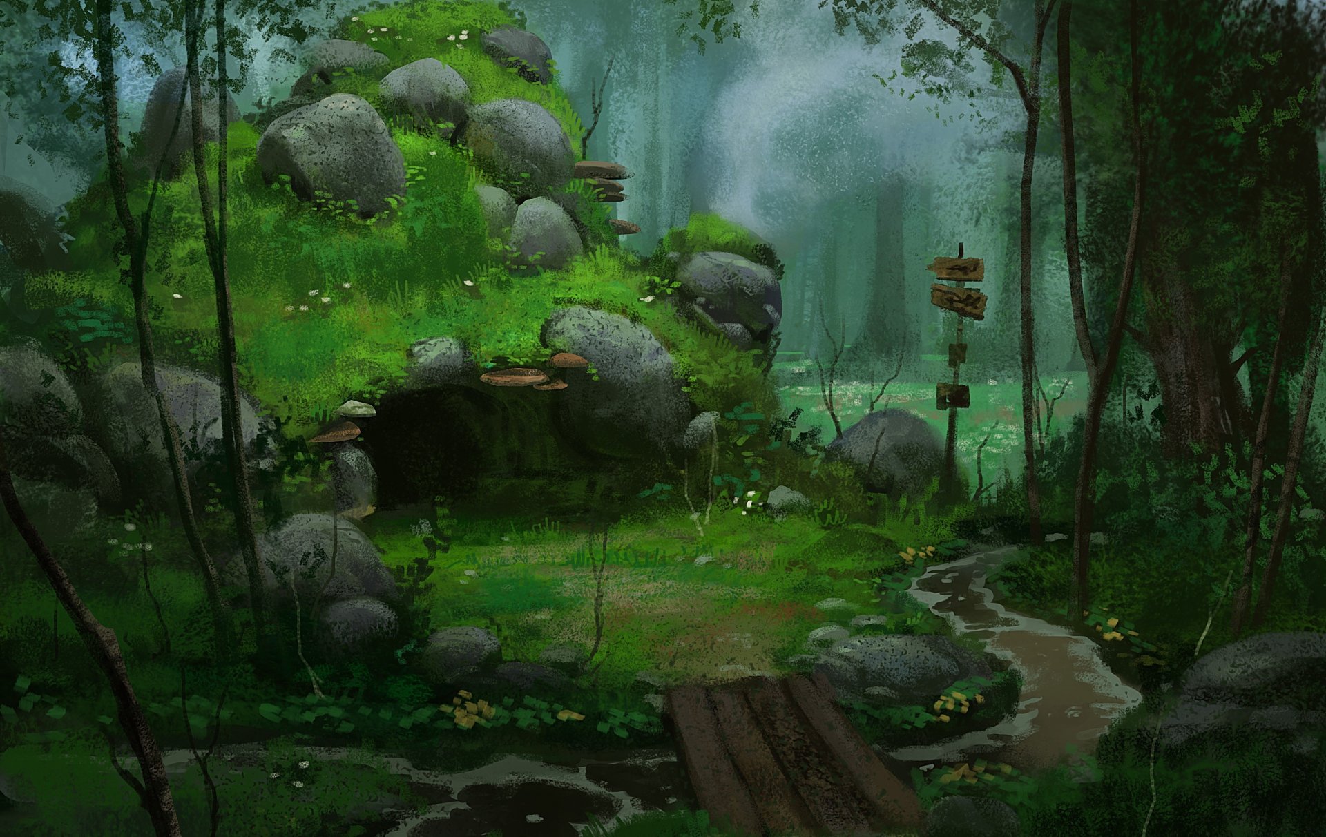 Castillo de cuento de hadas y columpios en el árbolCastillo de cuento de hadas y columpios en el árbol