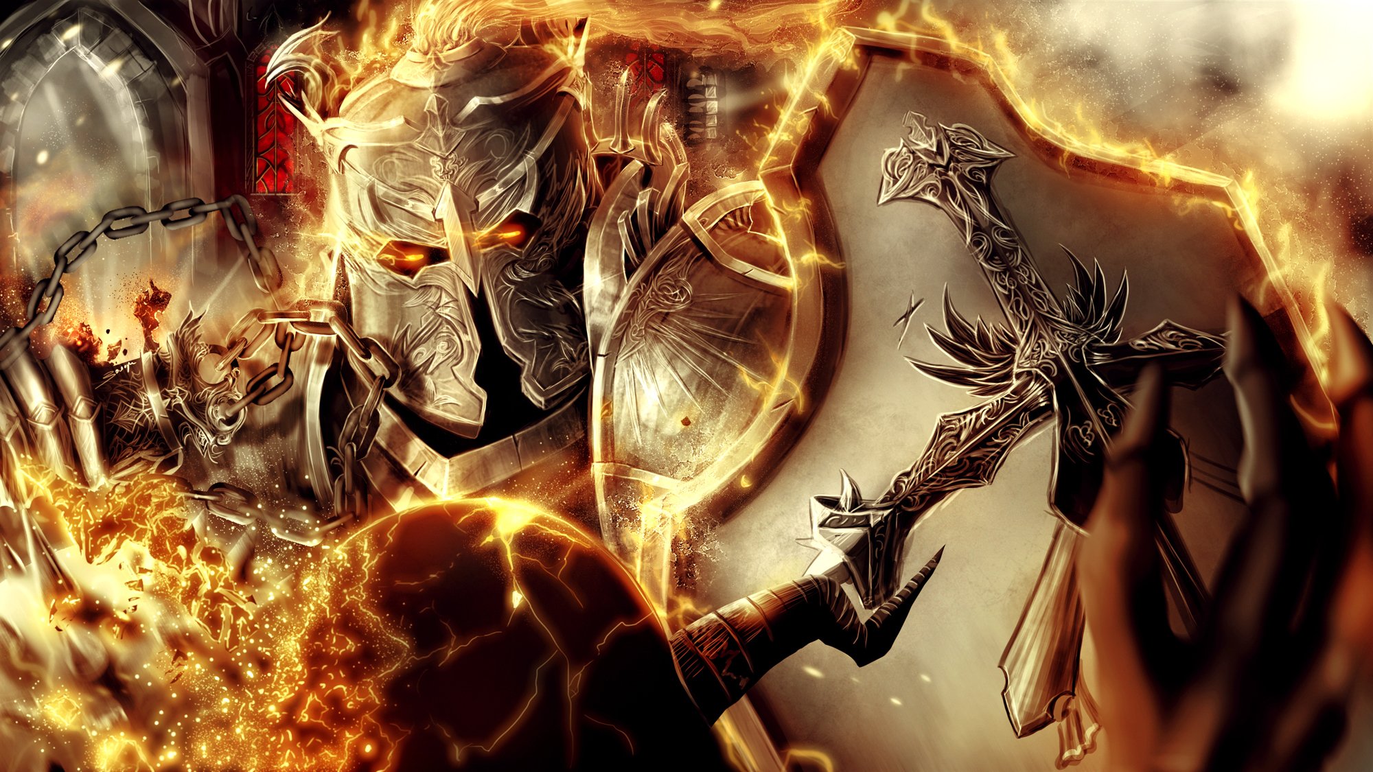 Dios del fuego con armas hermoso arte