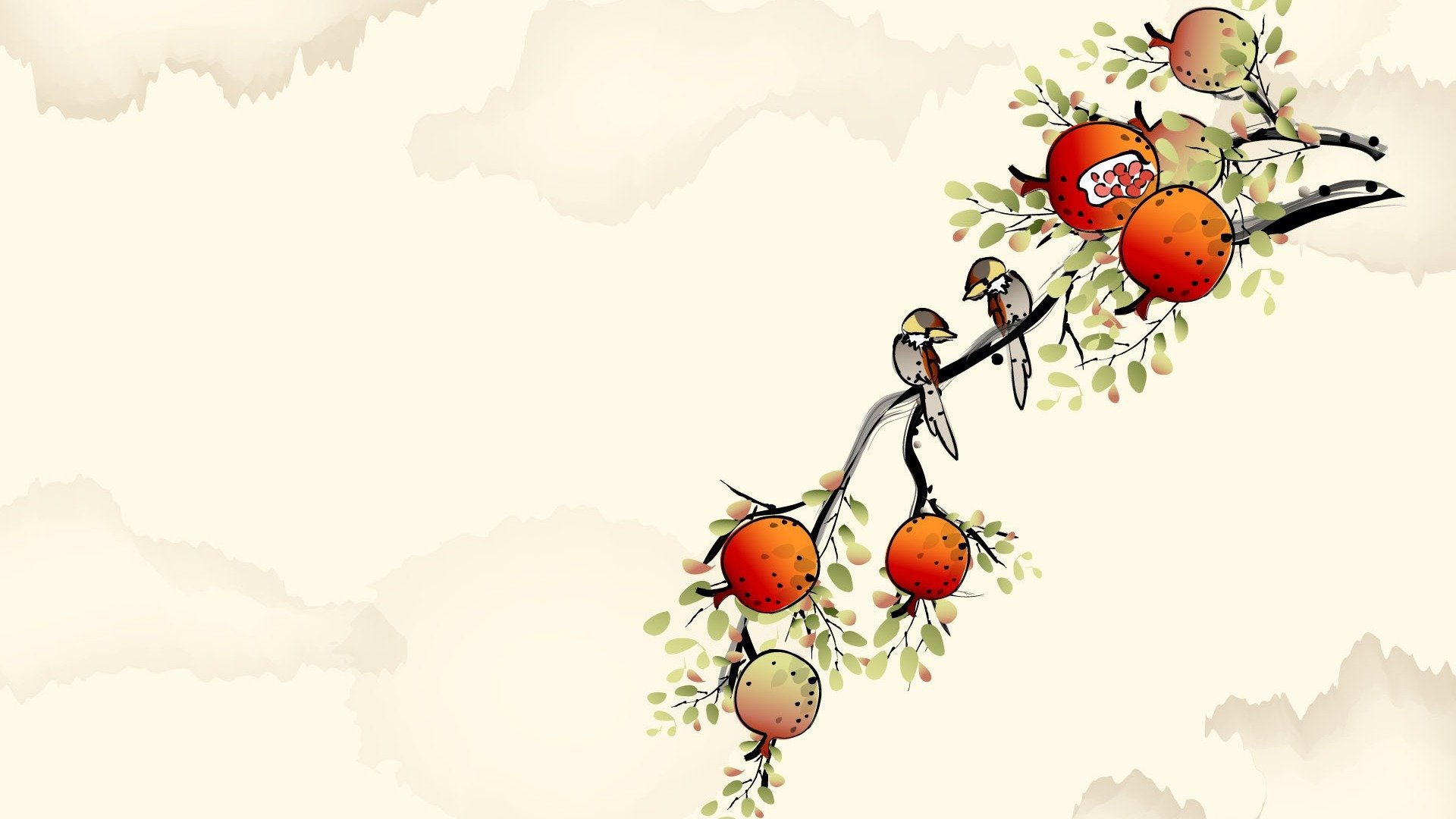 Papel pintado de gran formato con hojas secas en una rama y bokeh borroso